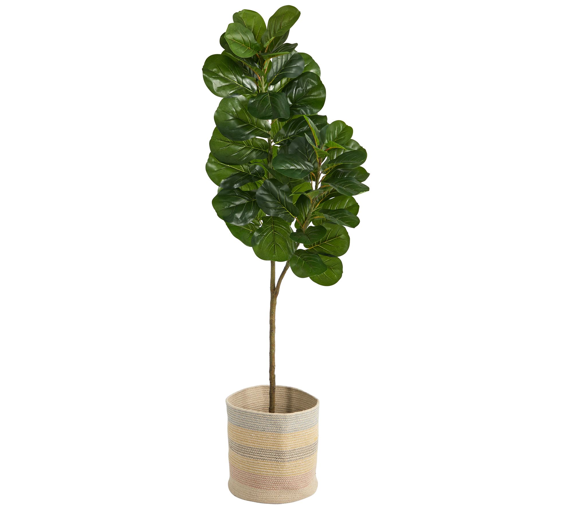 Nearly Natural 5.5' Fiddle Leaf Fig Multicolored Woven Planter