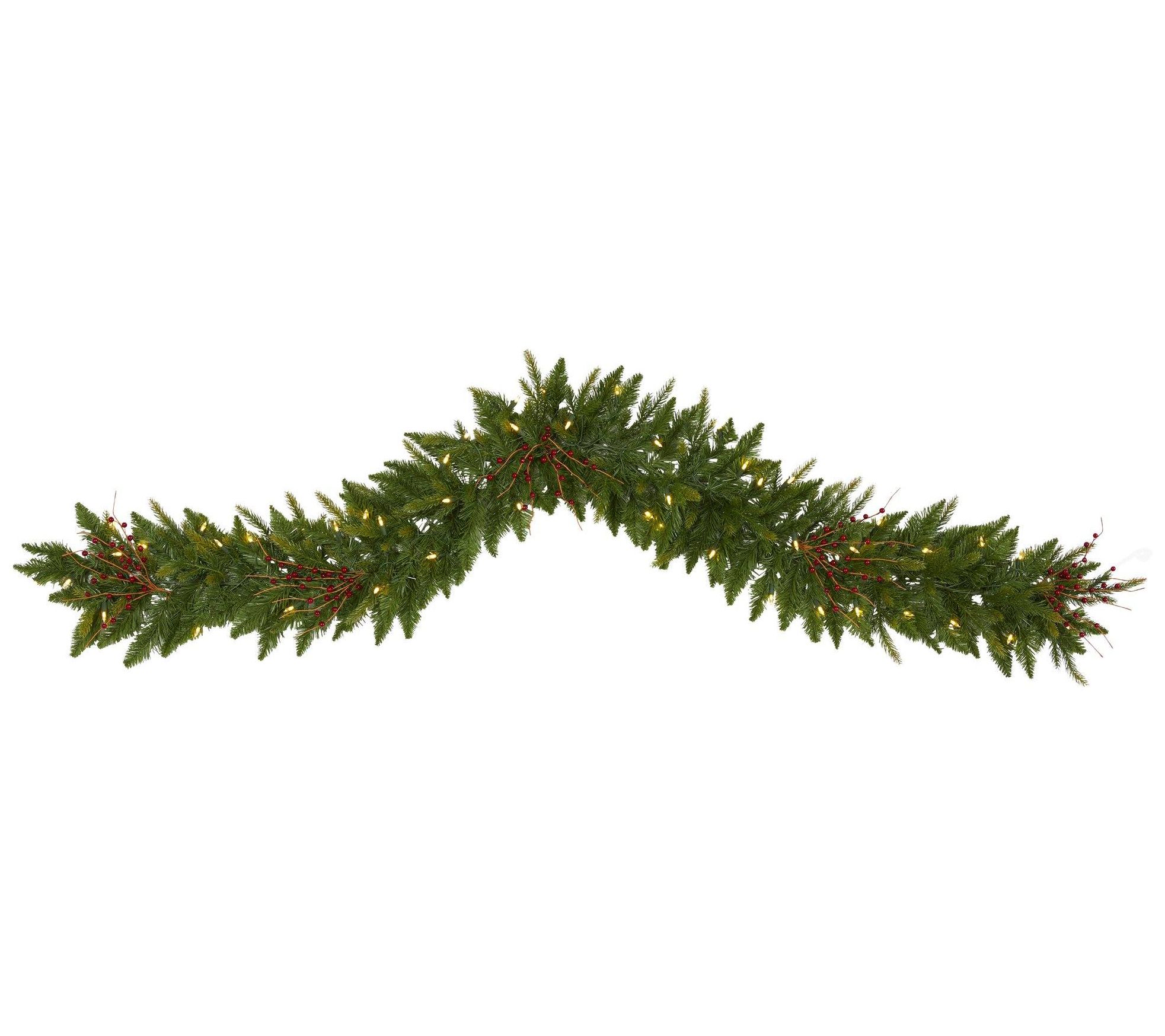 Light up the festivities with this gently glowing garland boasting a realistic pine design dotted with bright red holly berries. From Nearly Natural.