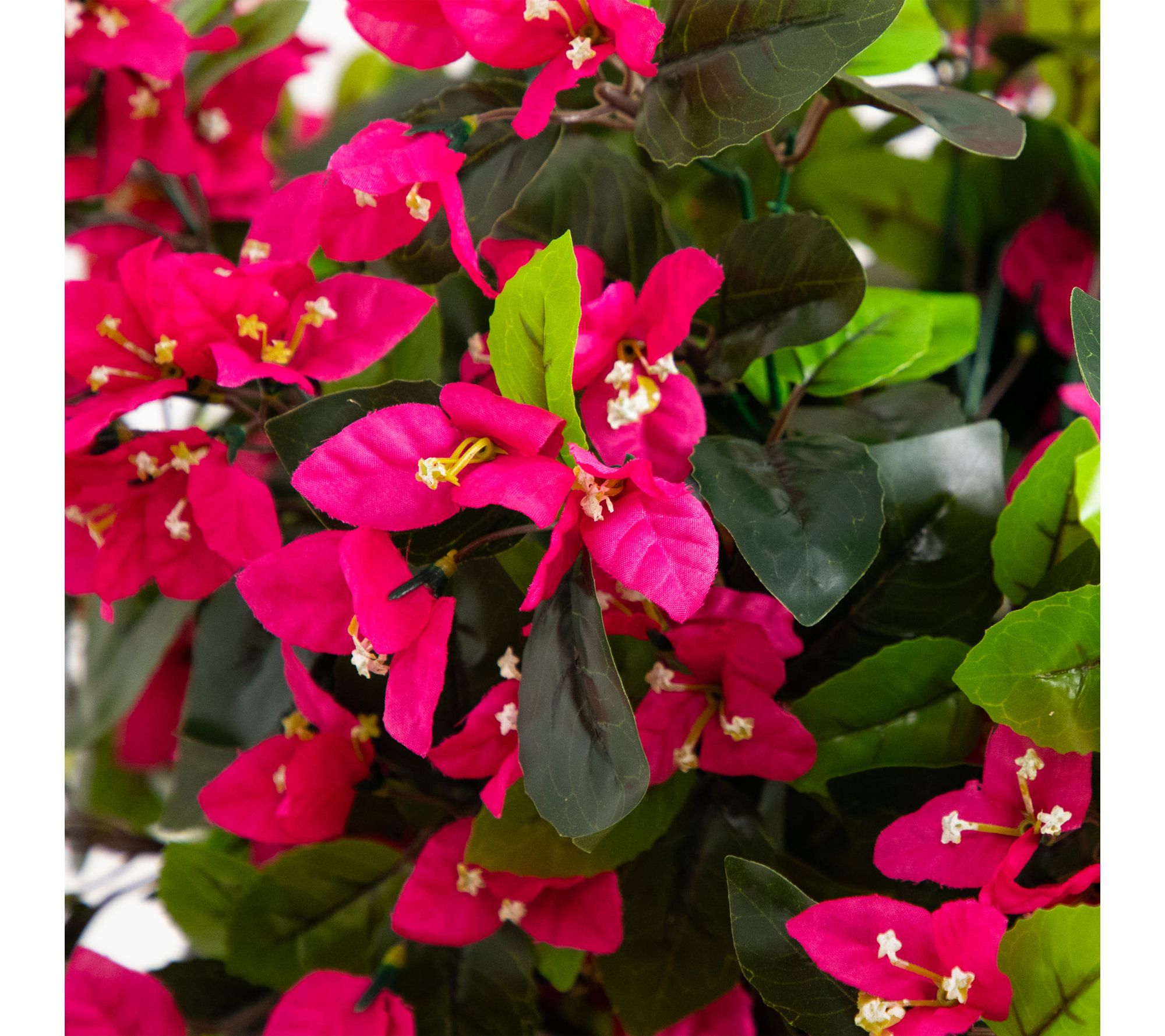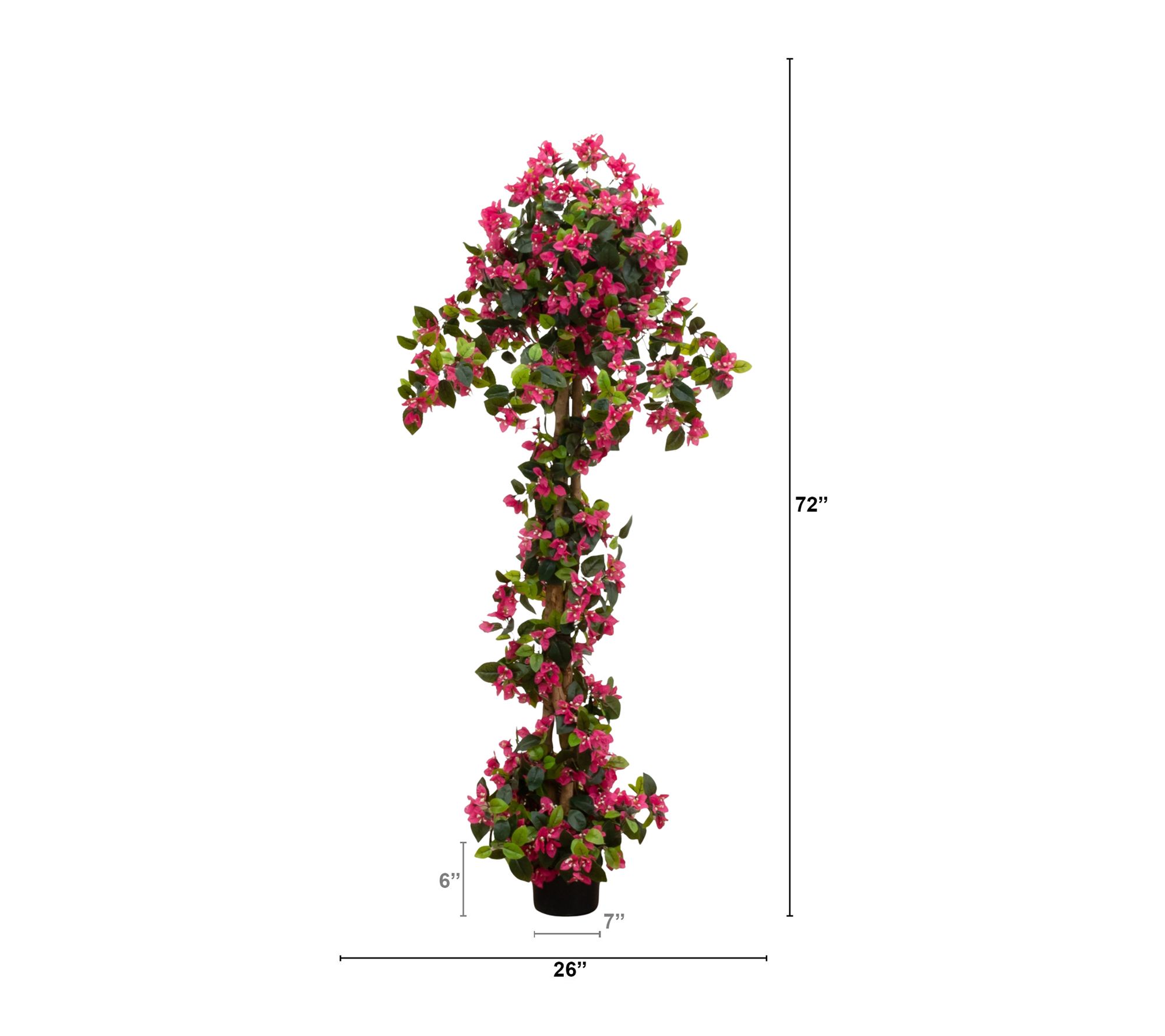 Bring a burst of vibrant color and timeless elegance to your space with this lifelike faux bougainvillea tree, artfully designed to evoke the charm of European courtyards. Its spiral silhouette and vivid floral accents create a sophisticated statement for patios, entryways, or living rooms, and require no upkeep to stay fresh year-round. From Nearly Natural.