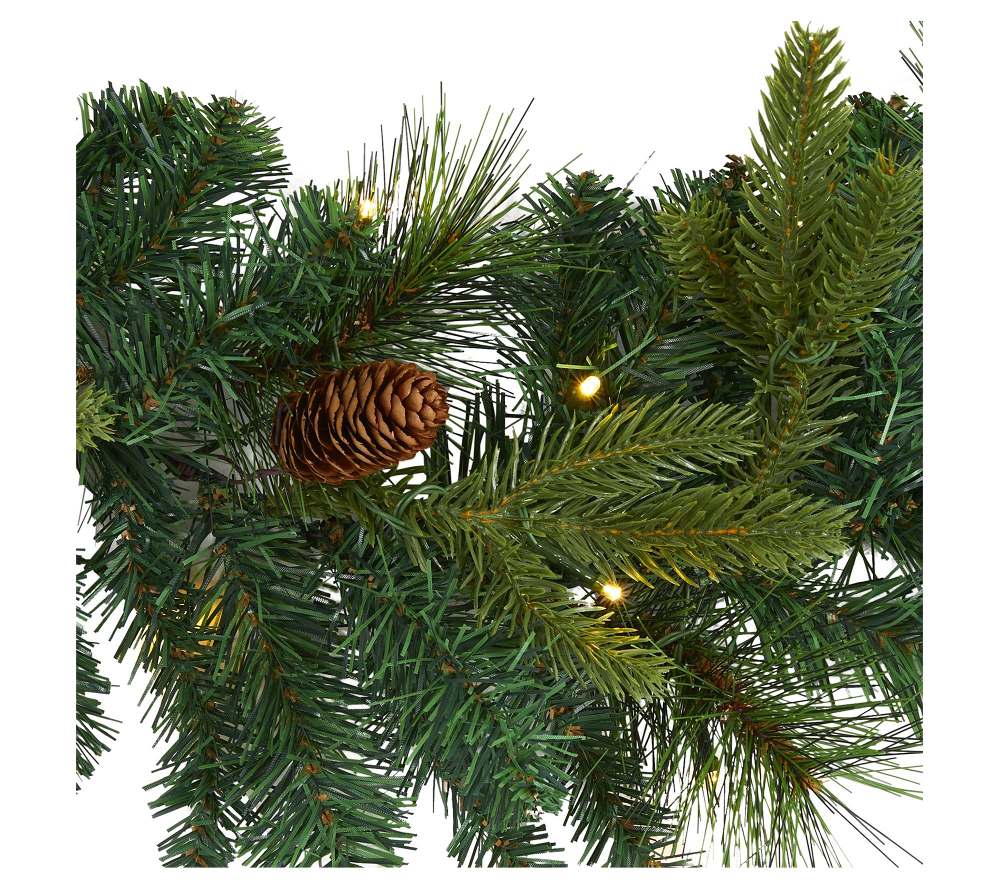 • Features mixed pine foliage and faux pinecones