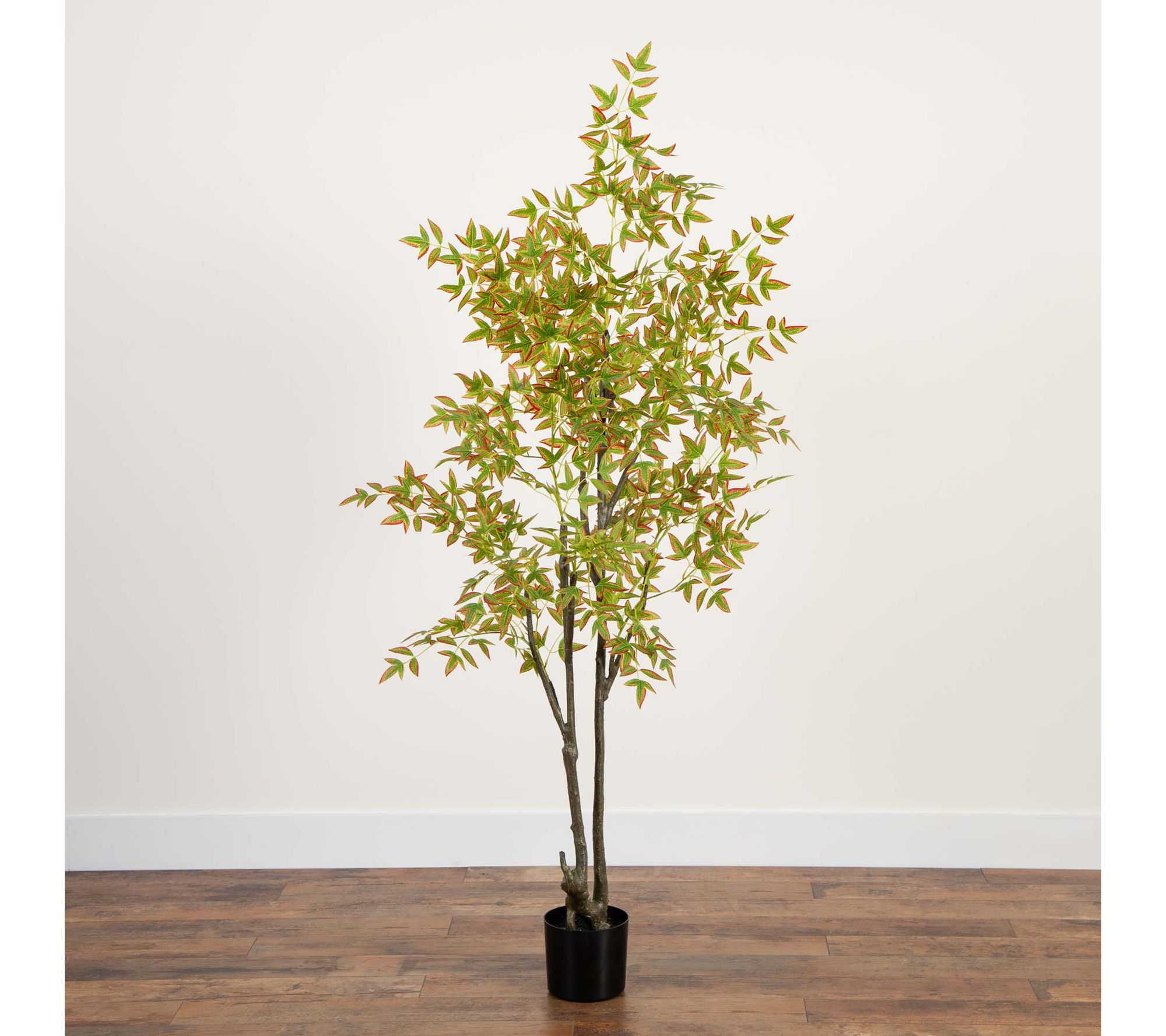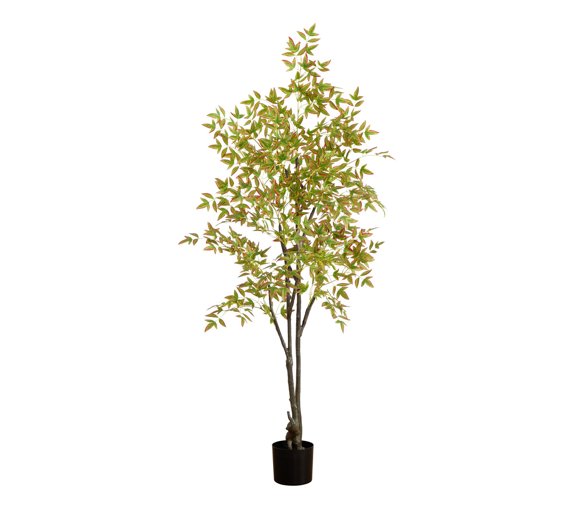Bring the beauty of nature indoors with this faux nandina tree. Majestic in design, it features colorful leaves that add a unique touch to any living space. Bend the branches to fit your decor or add it to your favorite planter for a custom look. From Nearly Natural.