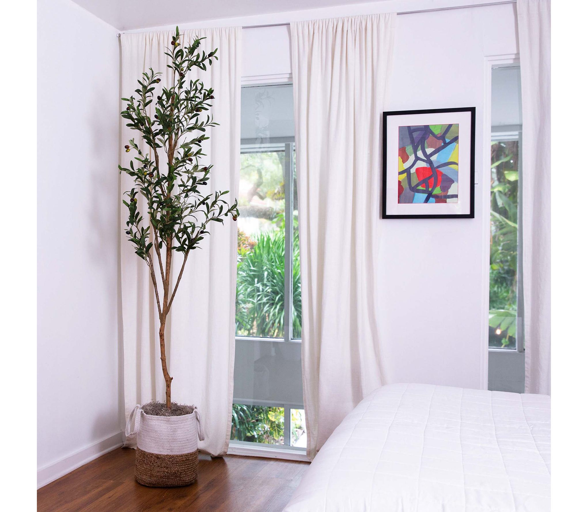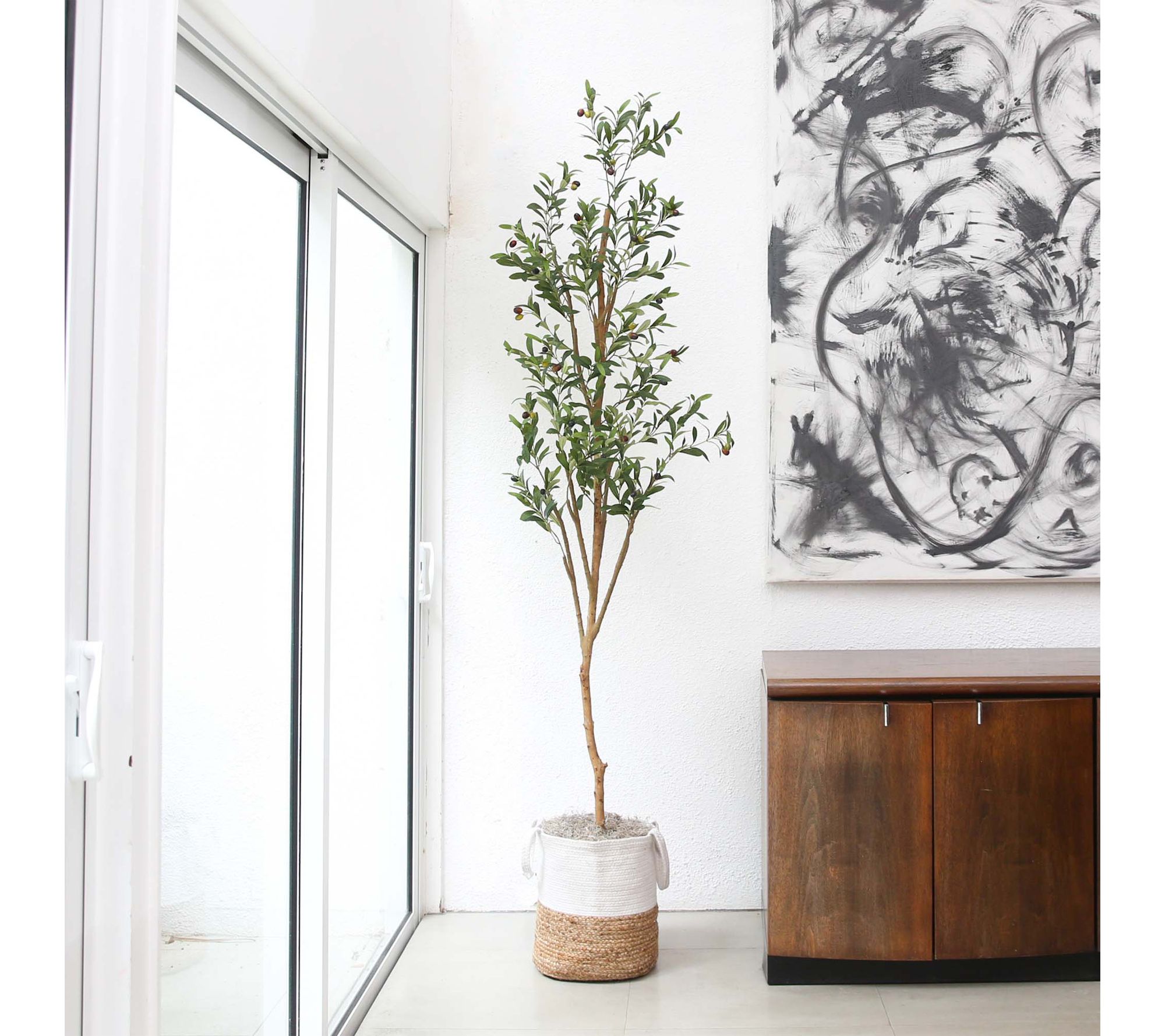 Give any room a charming, Mediterranean-inspired touch with this lifelike olive tree. Its striking seven-foot silhouette and textured jute basket create an eye-catching accent, easily enhancing bedroom corners or brightening up your kitchen. Enjoy the lush look and subtle flair while saving the time and expense of a live plant. From Nearly Natural.