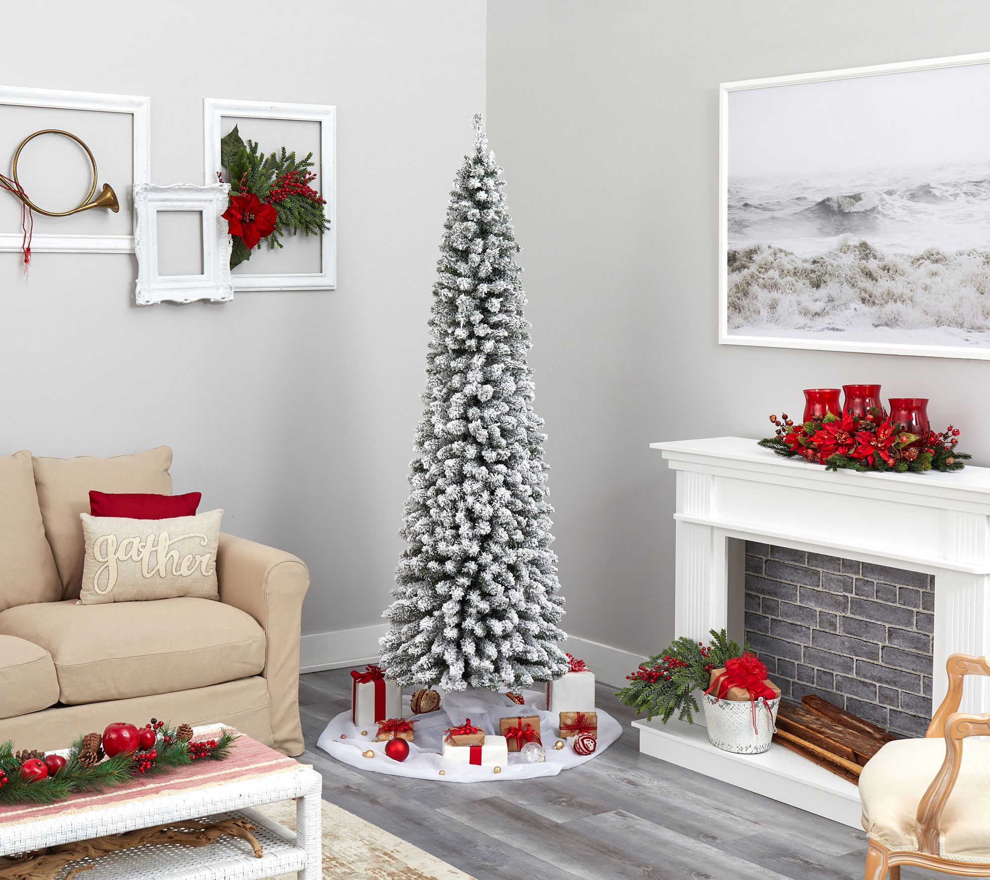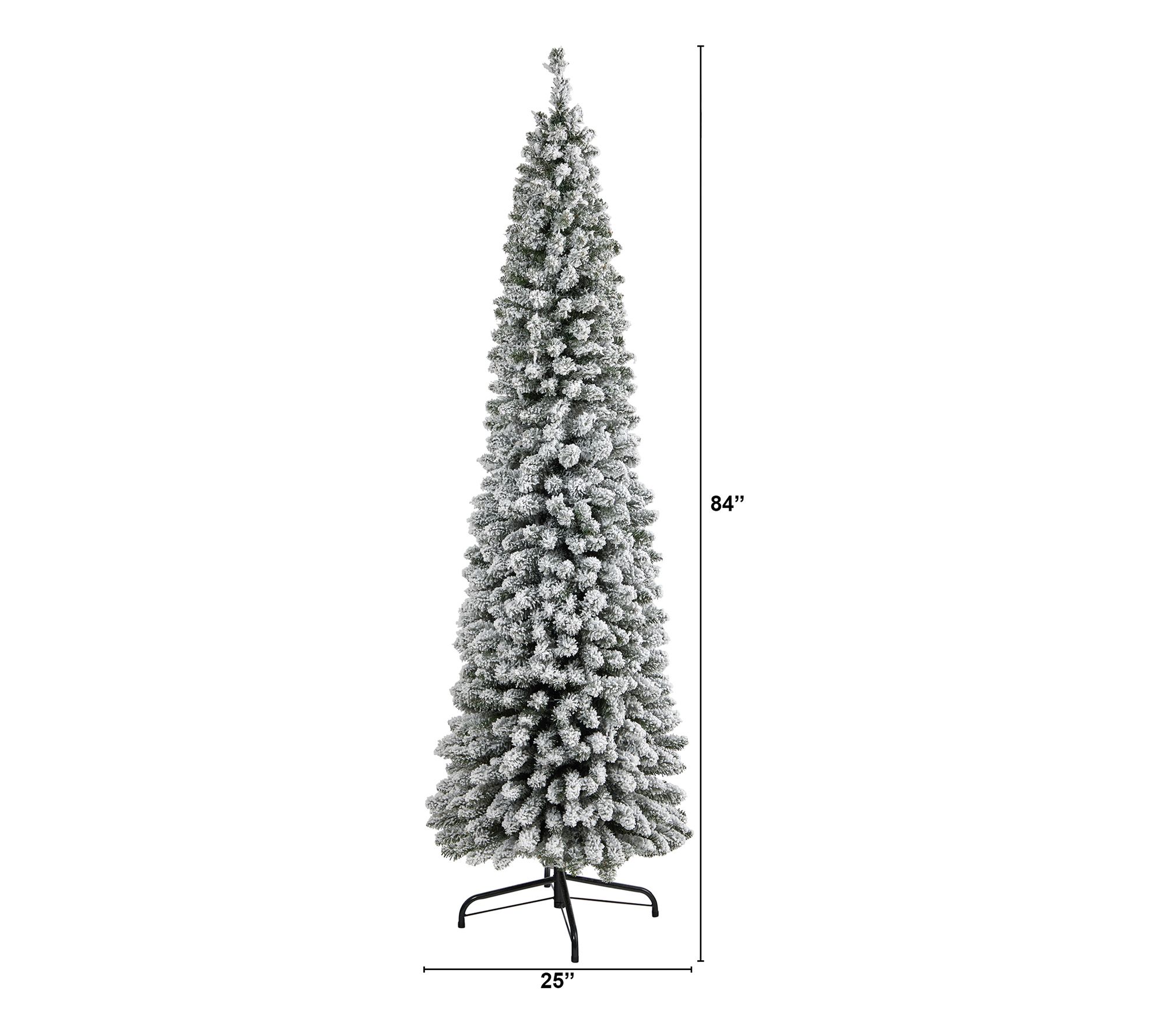 Create a winter wonderland in even the smallest spaces with this flocked Christmas tree. Its slender, pencil-like design and bendable branch tips make it perfect for showcasing your favorite ornaments, all beautifully flocked with faux snow for an ultimate winter setting. From Nearly Natural.