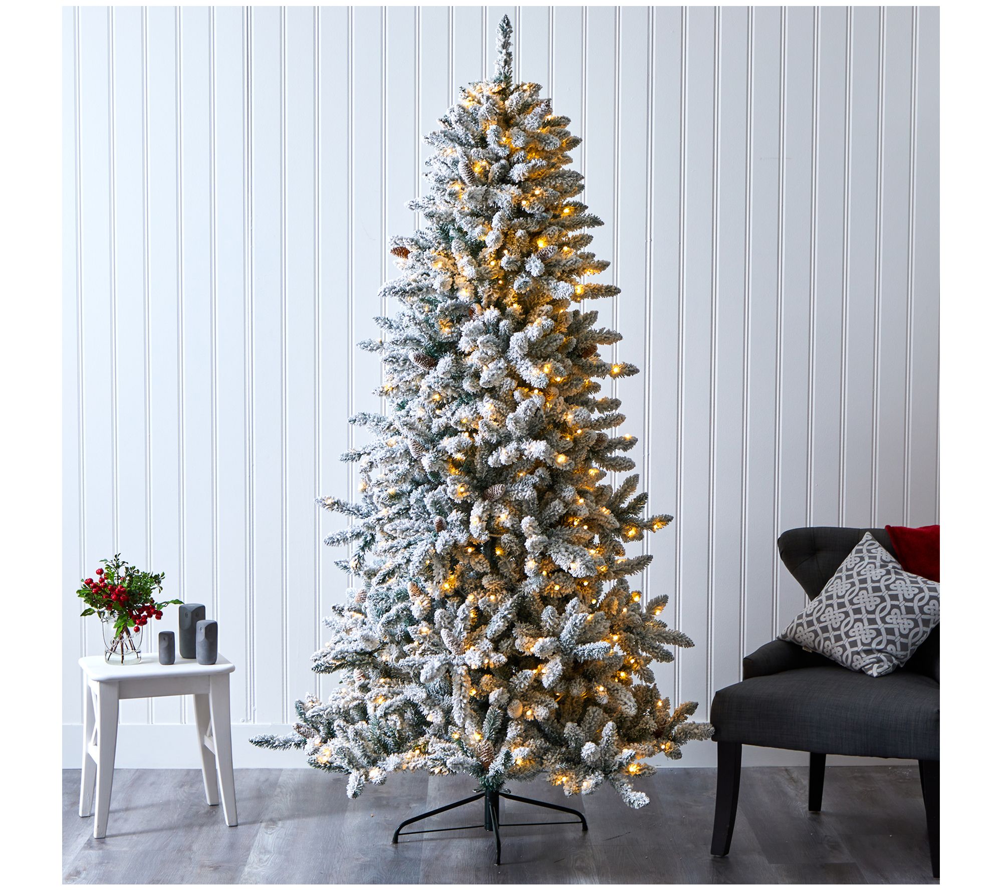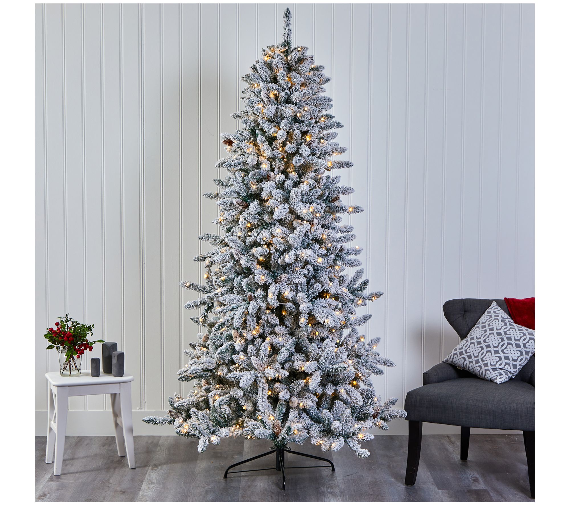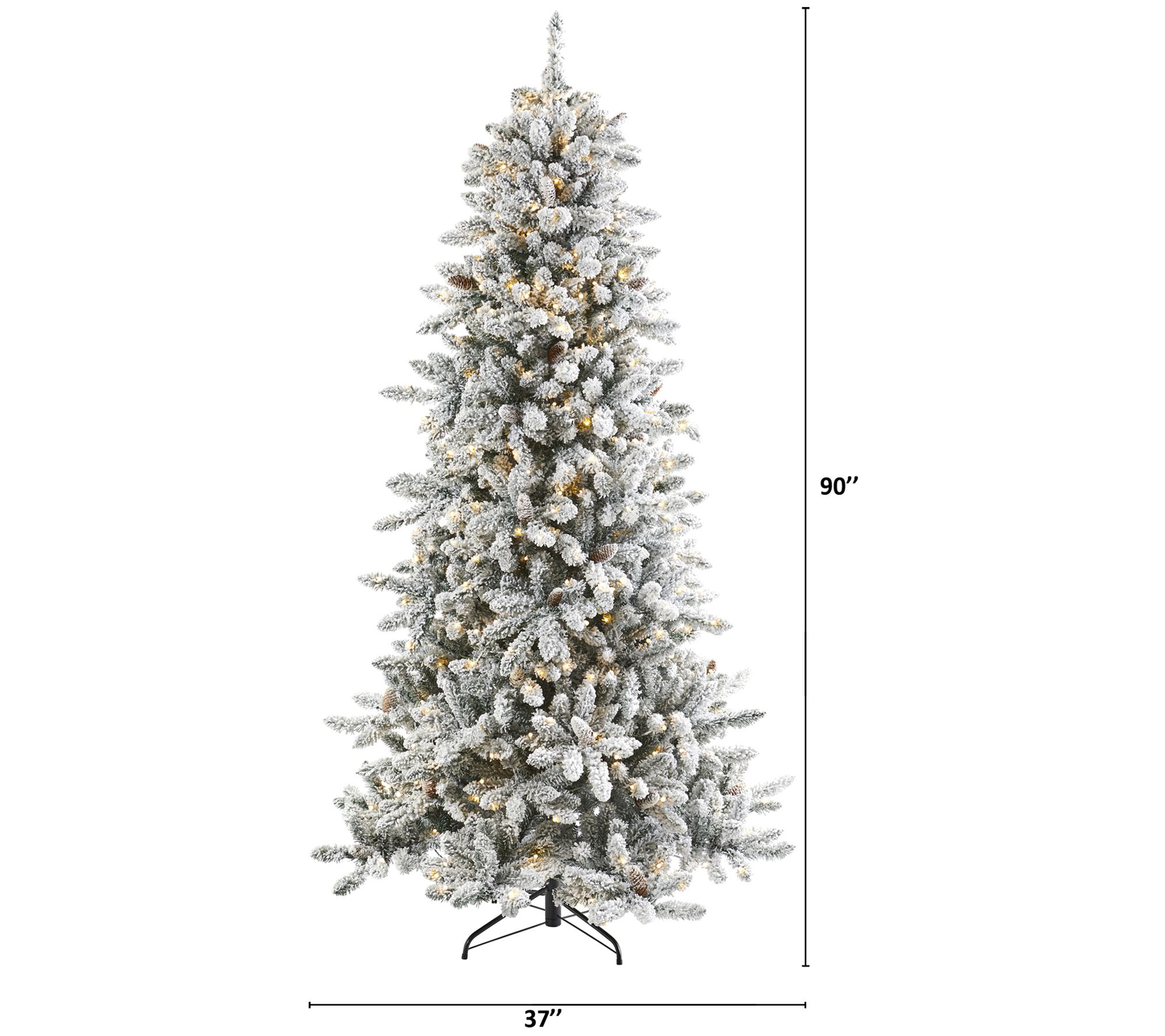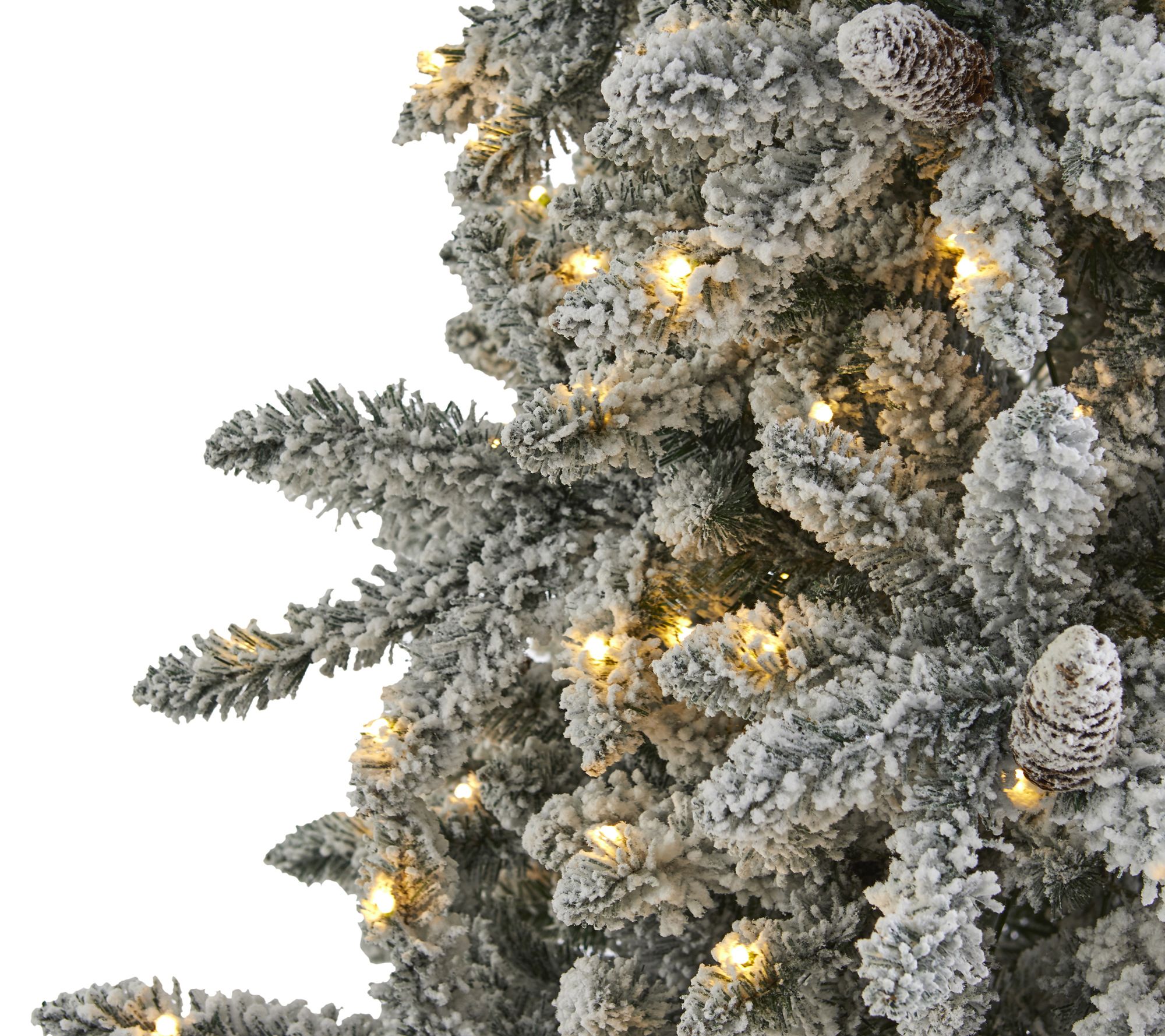 Create a true winter wonderland in your home or office with the Nearly Natural 7.5' Christmas tree with pinecones. This flocked artificial tree features soft-looking foliage and is beautifully accented with faux pinecones, making it a perfect centerpiece for your holiday decor. Pre-strung with 500 clear LED lights, it ensures your space is always picture-perfect. From Nearly Natural.