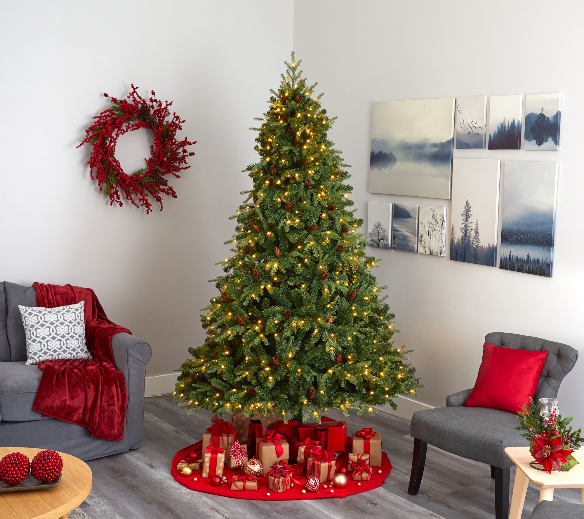 Nearly Natural 8' Christmas Tree with Lights and Pinecones