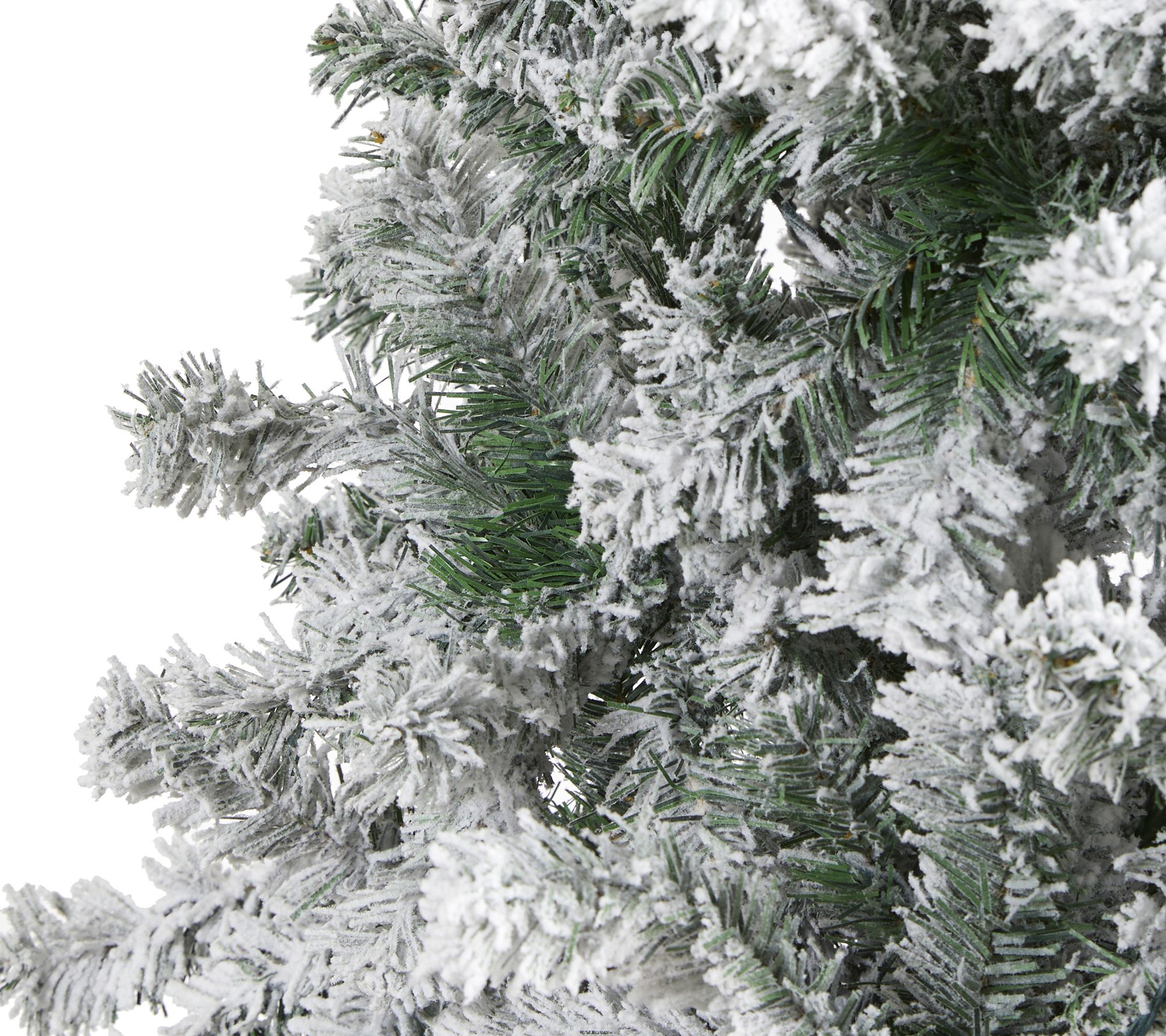Evoke a winter wonderland this holiday season with this flocked Christmas tree. This stunning tree features easy-to-bend branches, perfect for showcasing your personalized ornaments. Lightly frosted with faux snow, it creates a picturesque Christmas setting in any home or office. From Nearly Natural.
