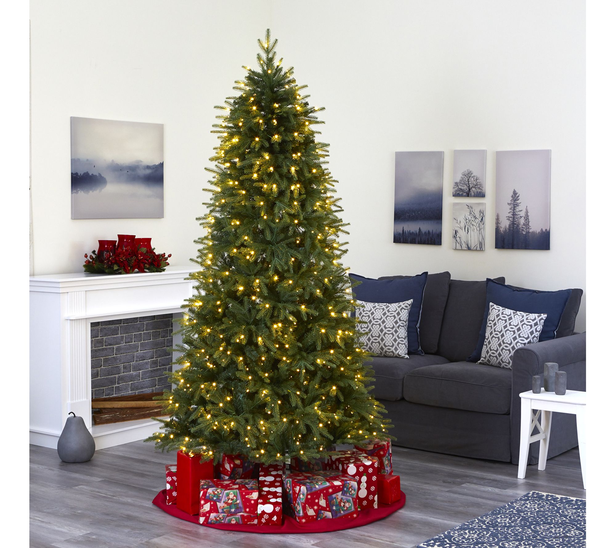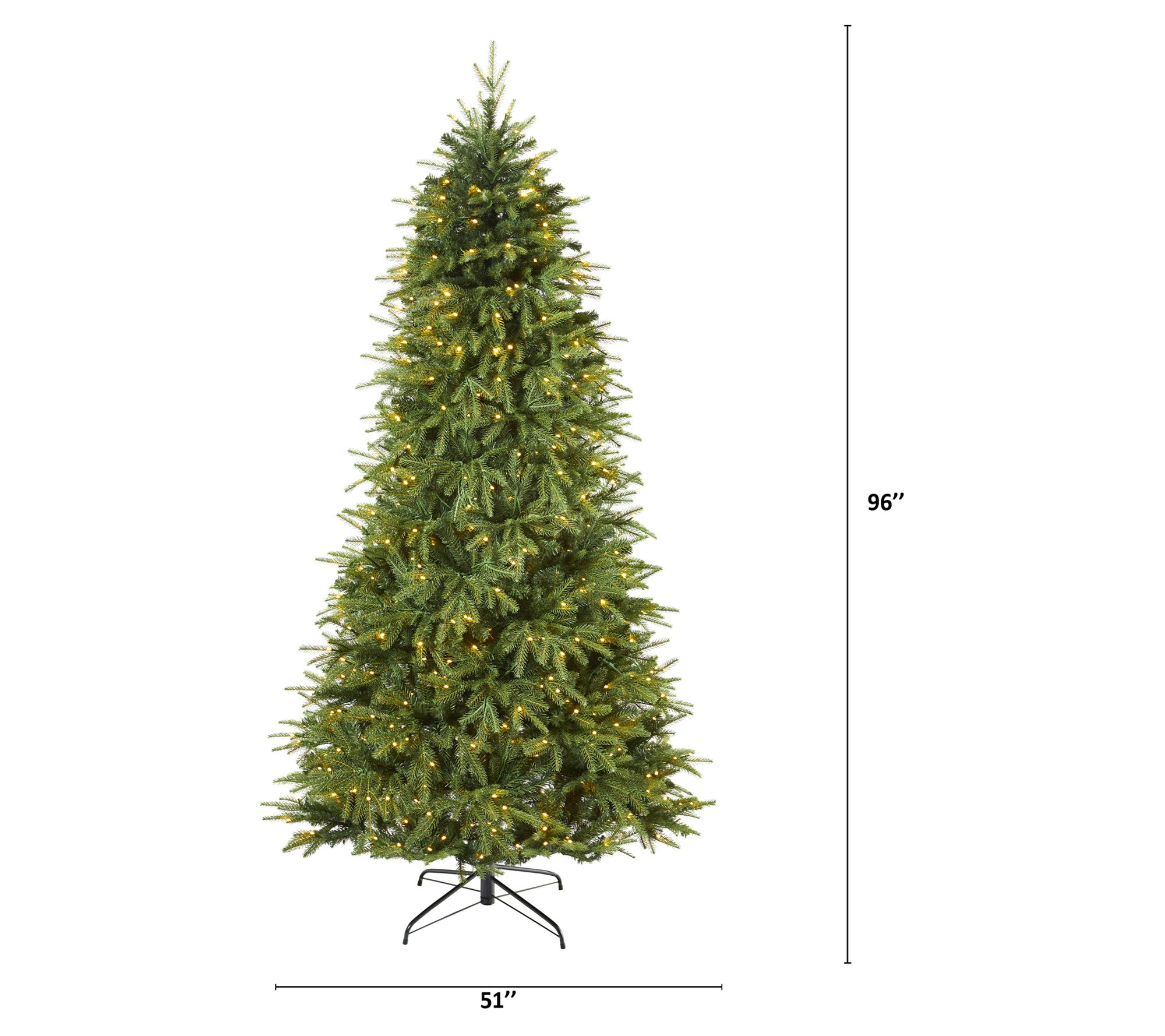 Evoke the charm of a traditional Christmas with the Nearly Natural 8' Vancouver fir Christmas tree. The robust, natural-looking silhouette features 3,470 easy-to-bend branch tips, perfect for showcasing your favorite ornaments. Pre-strung with 700 clear LED lights, this tree eliminates the hassle of tangles and is stabilized on a sturdy metal stand. From Nearly Natural.