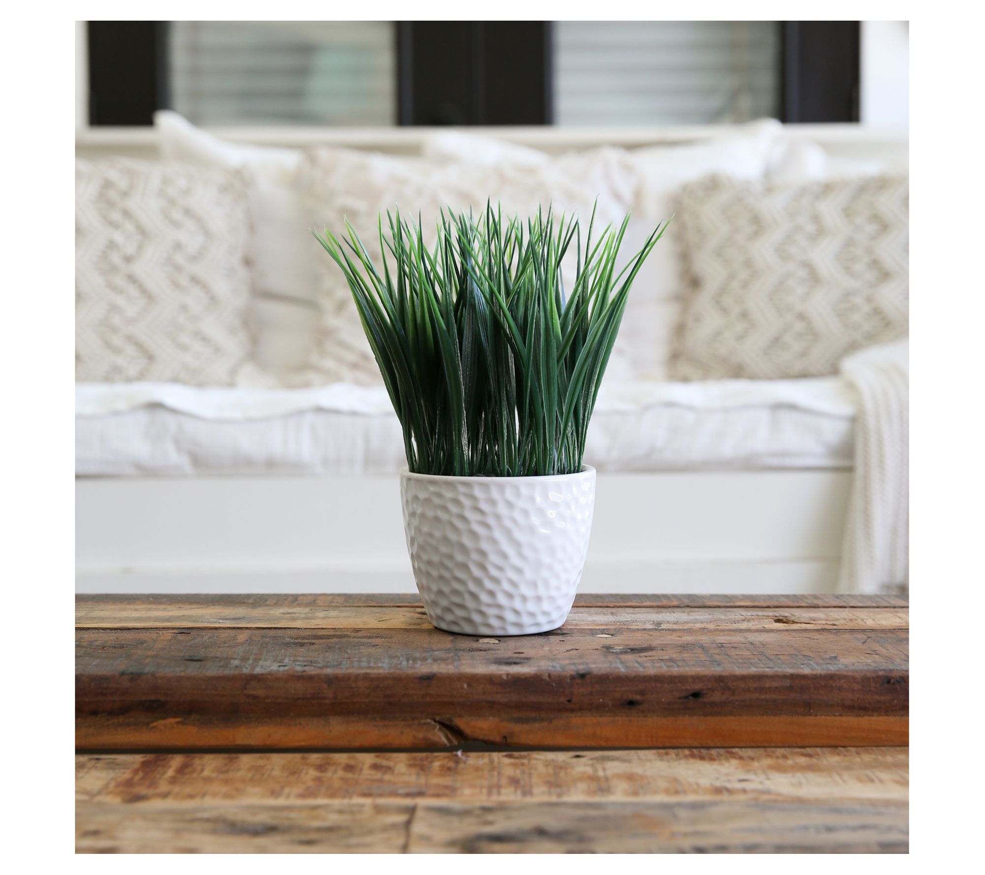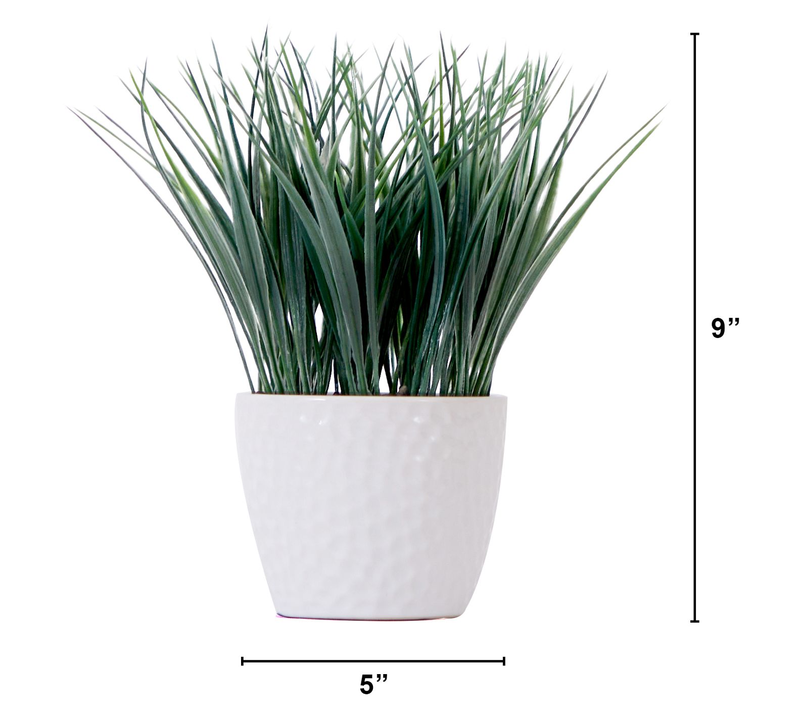 Transform your workspace or home with the Nearly Natural 9" Artificial Grass Plant, a vibrant addition that introduces a touch of greenery without the need for maintenance. Its spiky leaves, crafted from premium materials, create an eye-catching display in a sleek white decorative planter, perfect for any setting. From Nearly Natural.