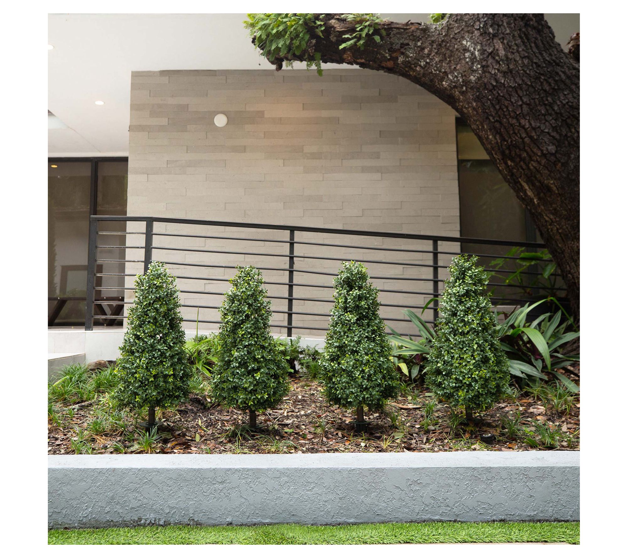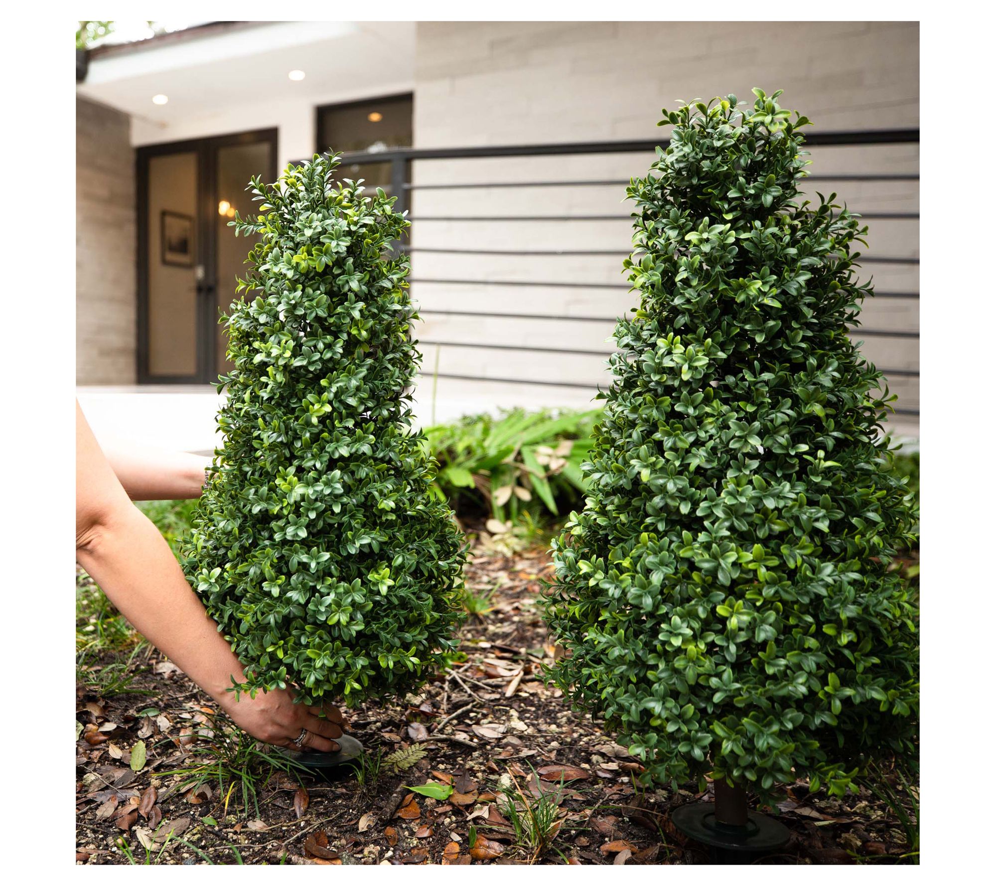 • Includes two faux boxwood plant stakes