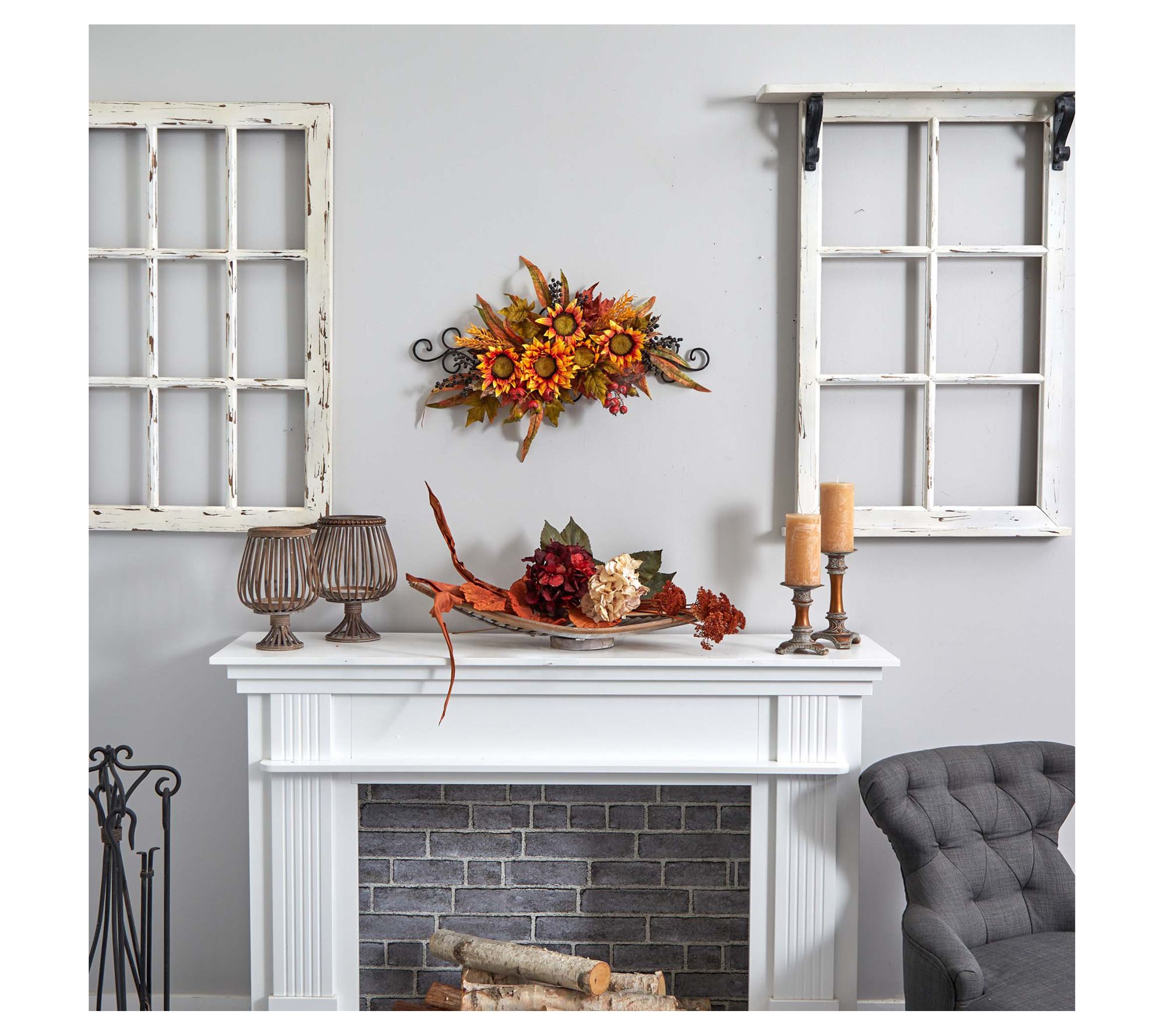 Nearly Natural Sunflower Swag with Metal Frame
