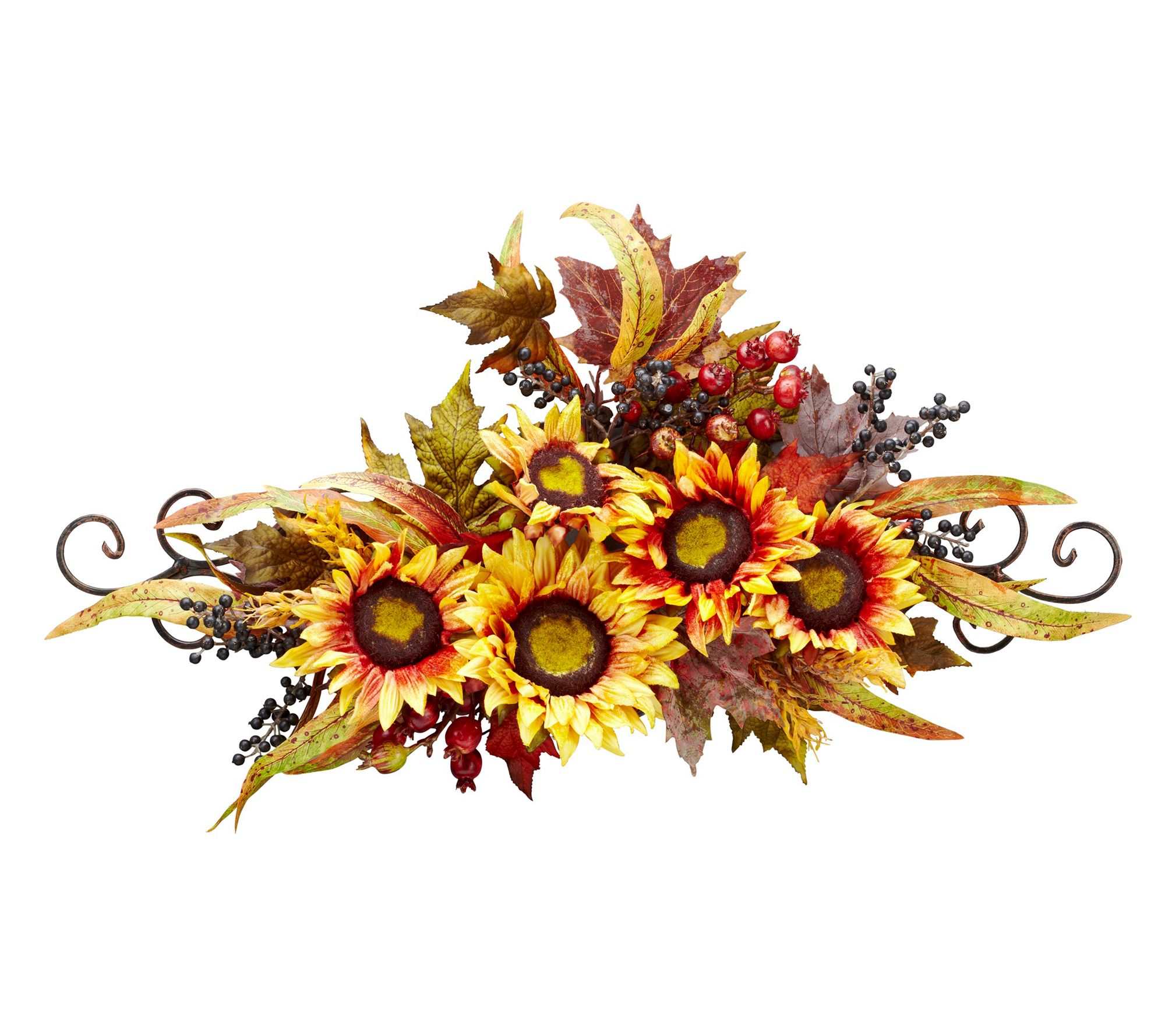 Celebrate the joy of the season by brightening up your entryway or mantel with this sunflower swag, showcasing vibrant yellow blooms and lifelike greenery on a classic metal frame. Whether you're hosting family for the holidays or hoping to refresh your space, this accent instantly adds a cheerful touch. From Nearly Natural.