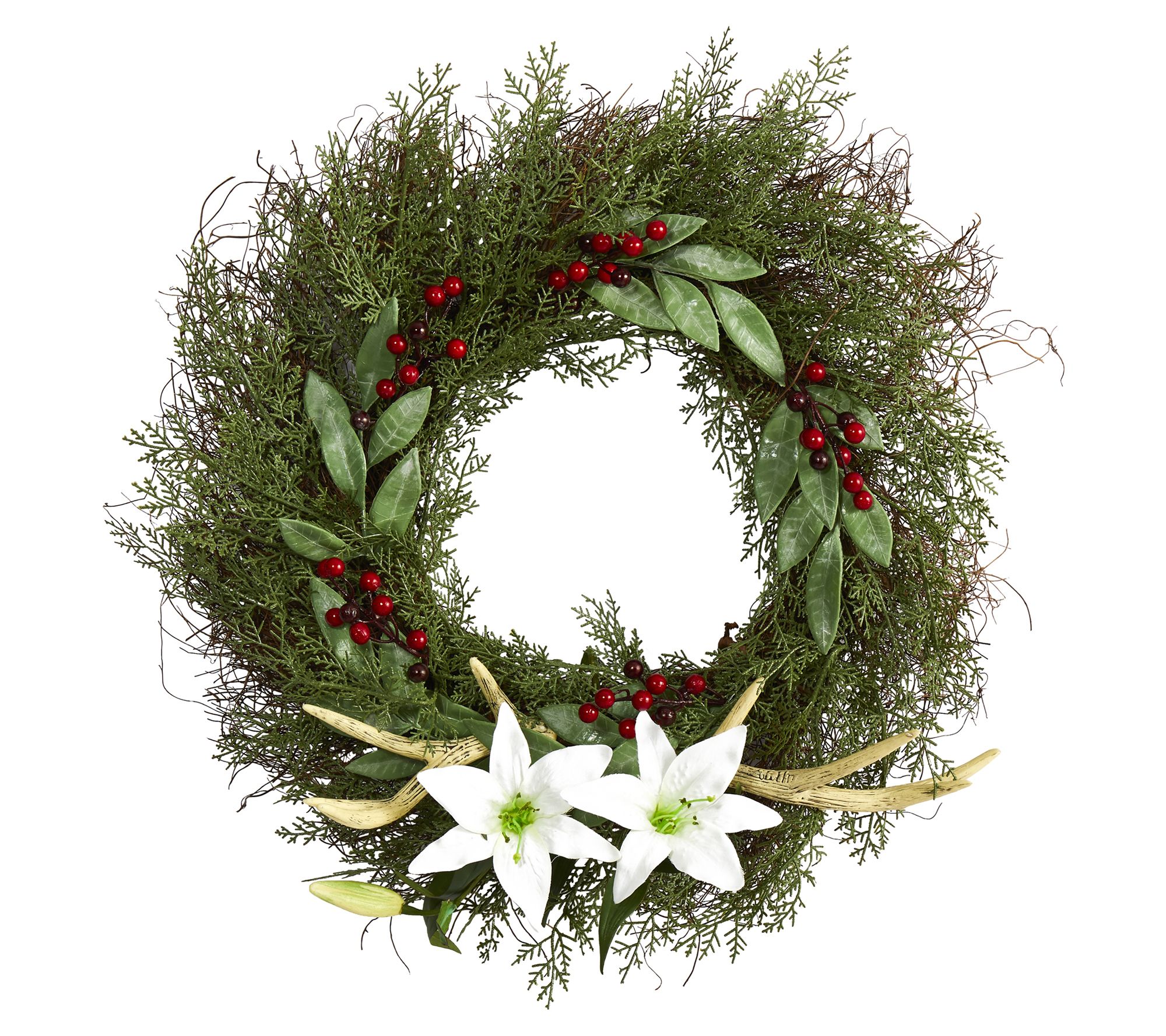 Nearly Natural20" Cedar Antlers Lily & Ruscus w/Berries Wreath