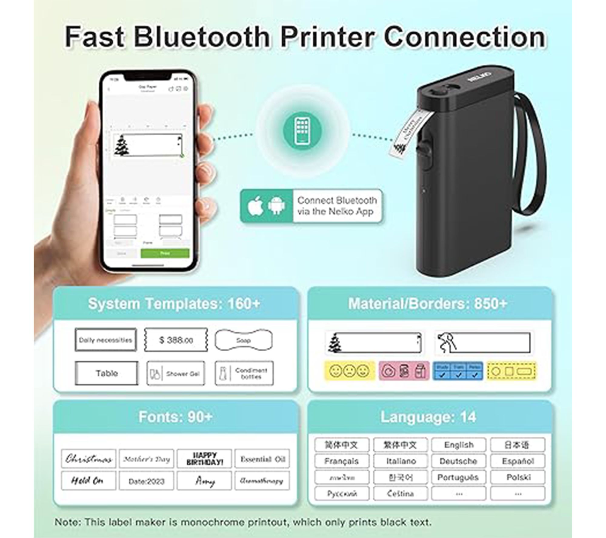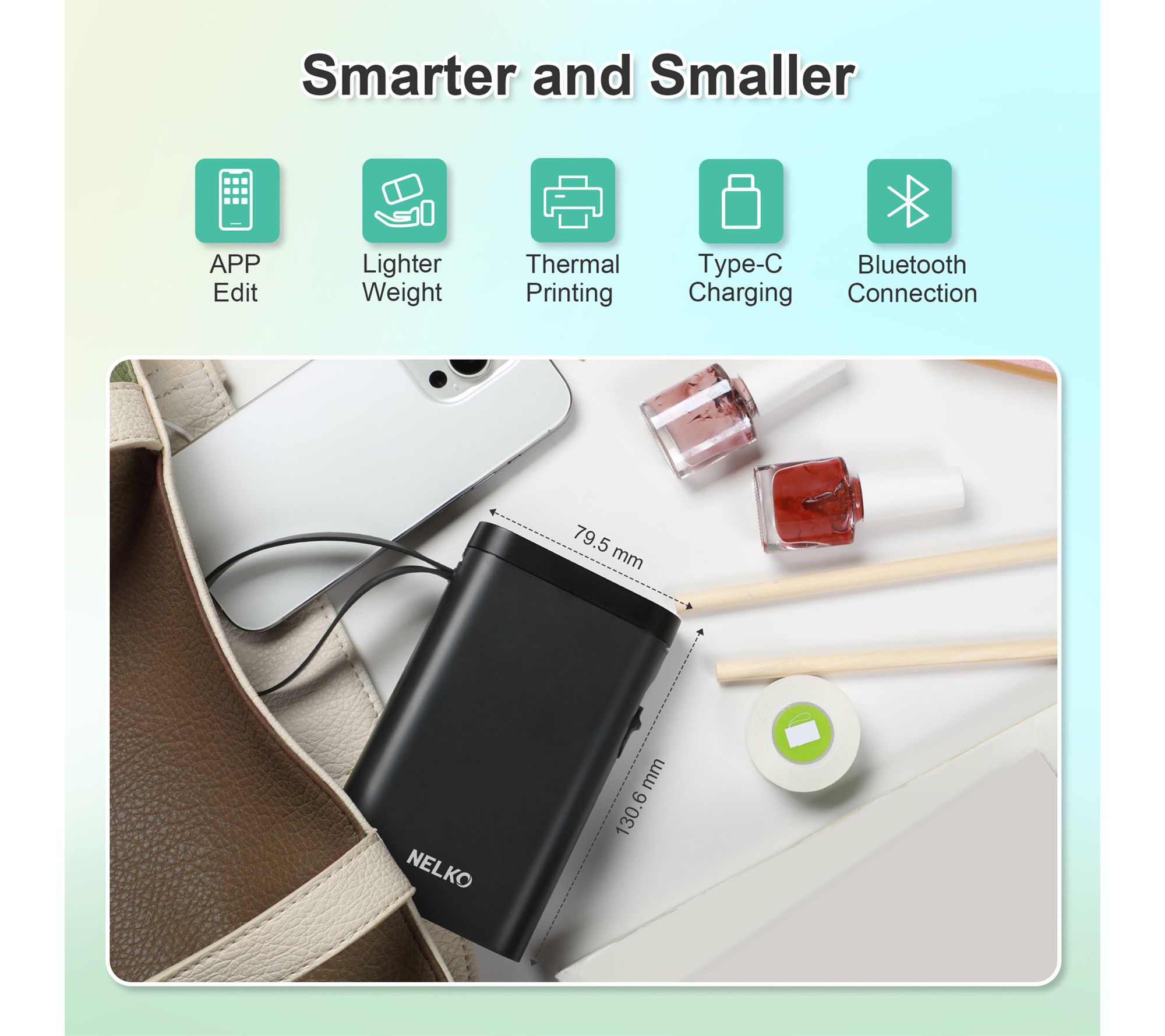 Whether you’re organizing your home, labeling files at work, or adding a personal touch to gifts, this all-in-one printer makes it easy and fun to print clear, custom labels wherever you go. Its portable, rechargeable design and wireless Bluetooth connectivity let you create everything from barcodes to QR codes and images, all with simple app control -- no ink required. From Nelko.