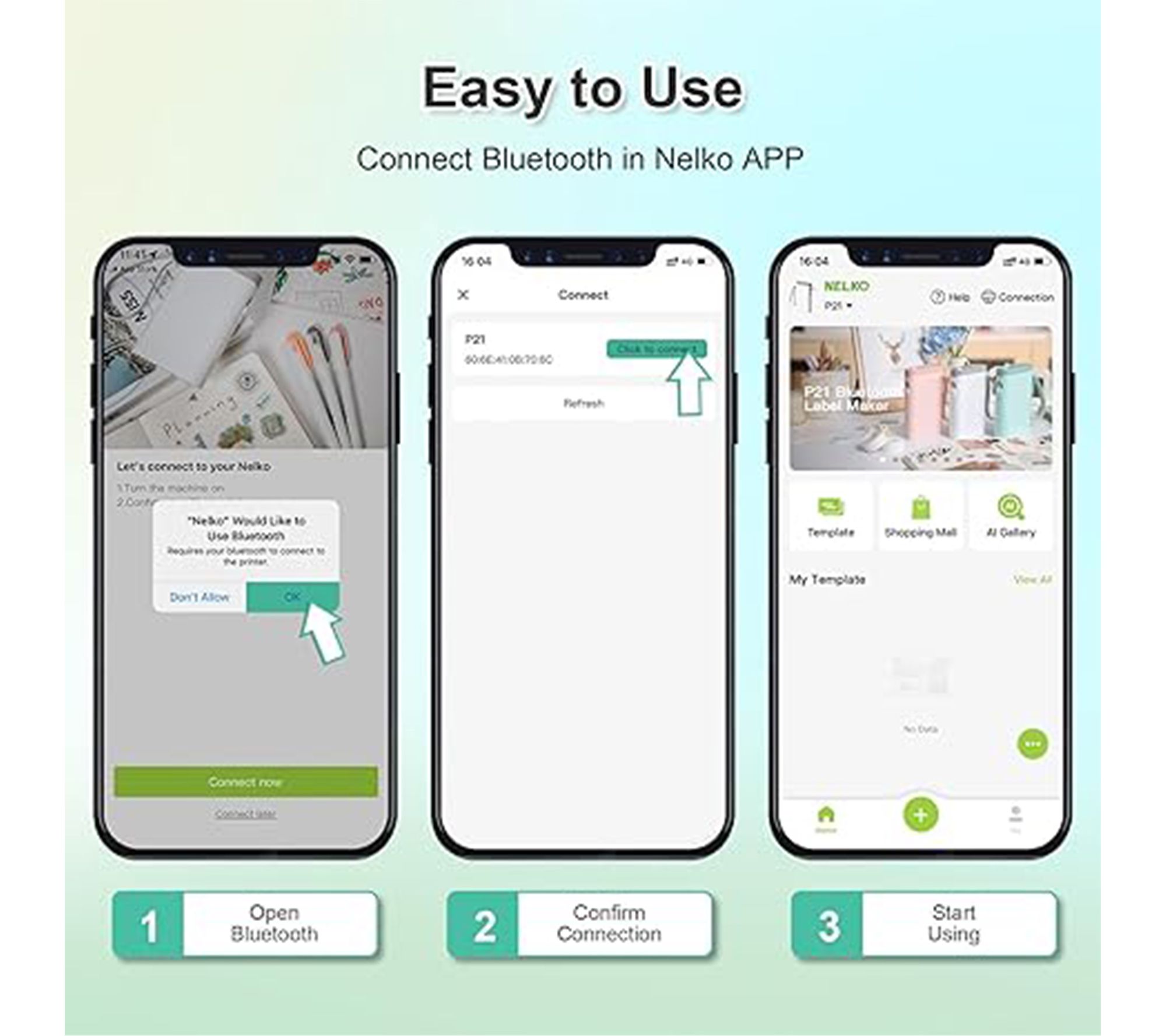 Nelko P21 Bluetooth Label Printer with 100pc Roll and 180pc Ro
