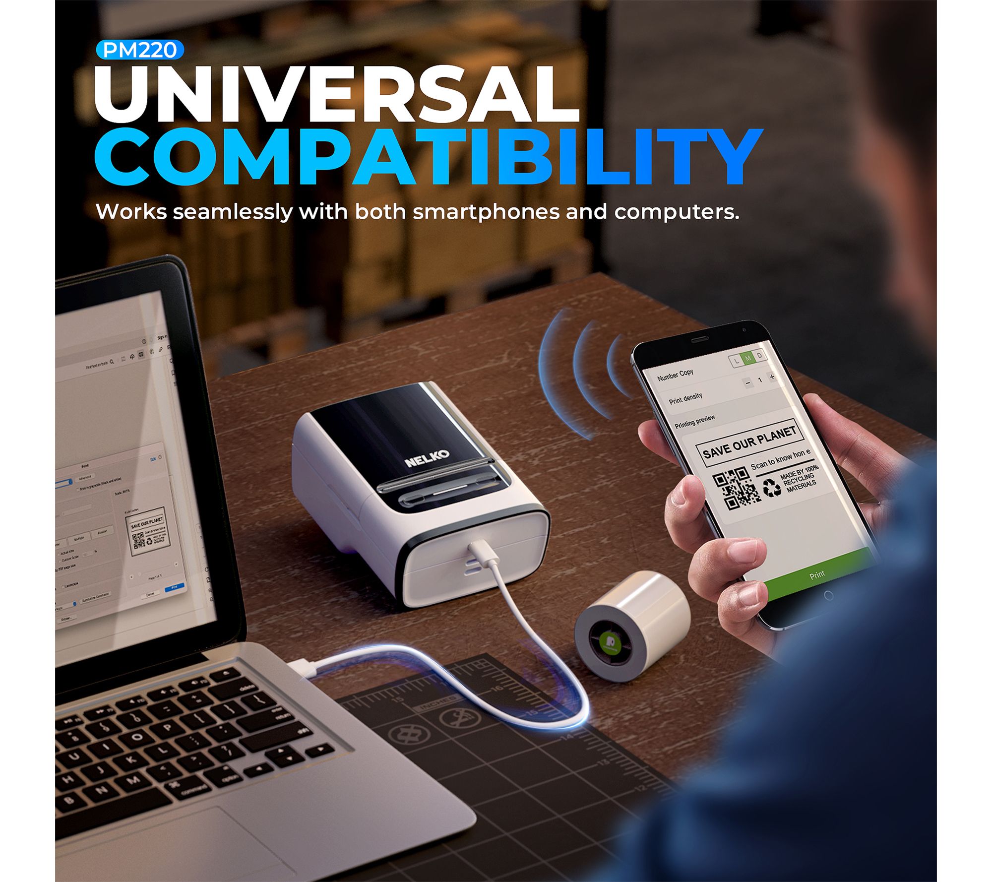Supports iOS, Android, and PC via Nelko app (phones) and driver download (PC); do not connect directly via Bluetooth