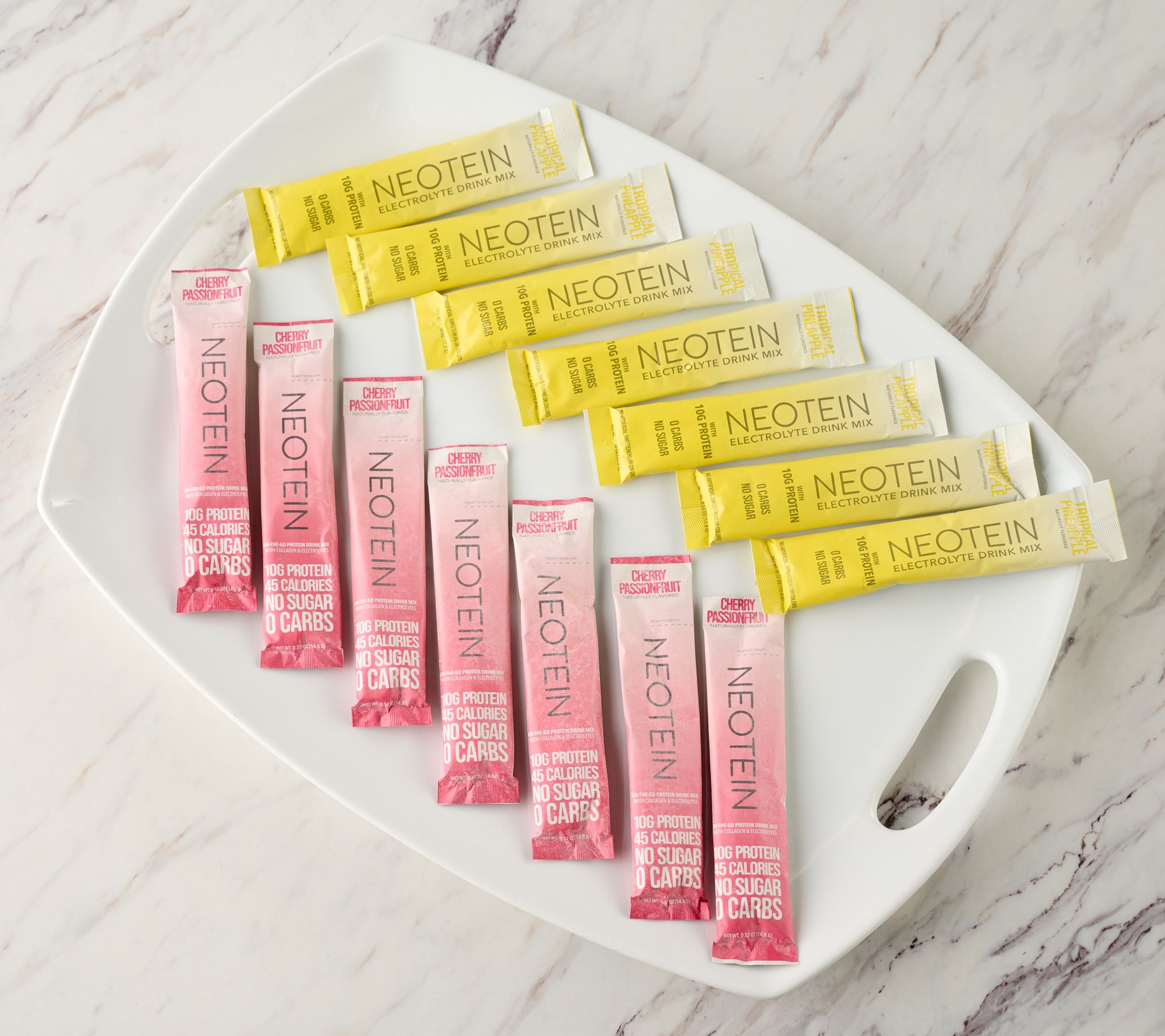 • Combo: seven packets each of cherry passionfruit and tropical pineapple