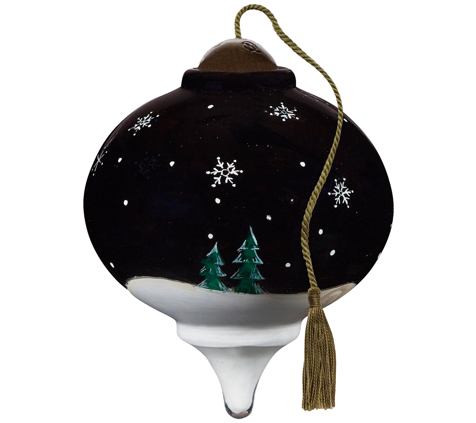 Deck your tree with festive flair by hanging up this marquise-shaped ornament that captures the jolly old saint himself in a scene set against a wintery landscape. From Ne'Qwa.