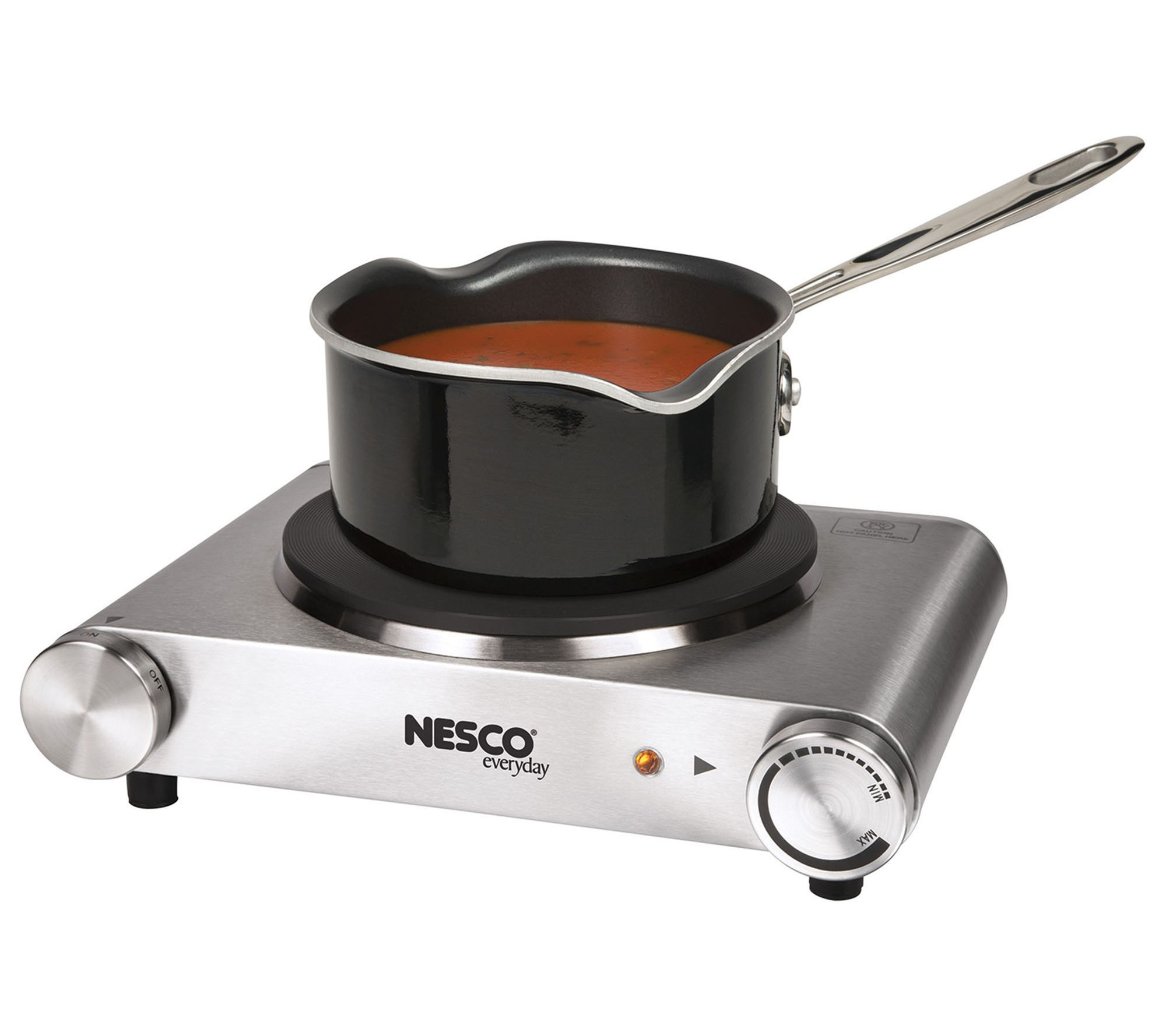 Great for simmering, boiling, frying, or sauteing a delicious meal even in a compact cooking area, this single electric ceramic burner features adjustable heat settings and an auto-shutoff feature. From Nesco.