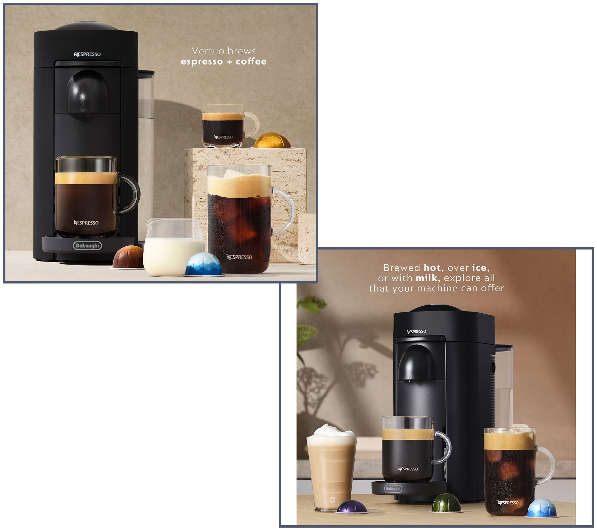 Whether you crave a bold espresso to jumpstart your morning or a smooth cup of coffee to savor in the afternoon, this machine adapts to every mood and taste. With simple one-touch brewing and options for hot or iced drinks, your favorite cafe moments now happen right at home. From Nespresso.