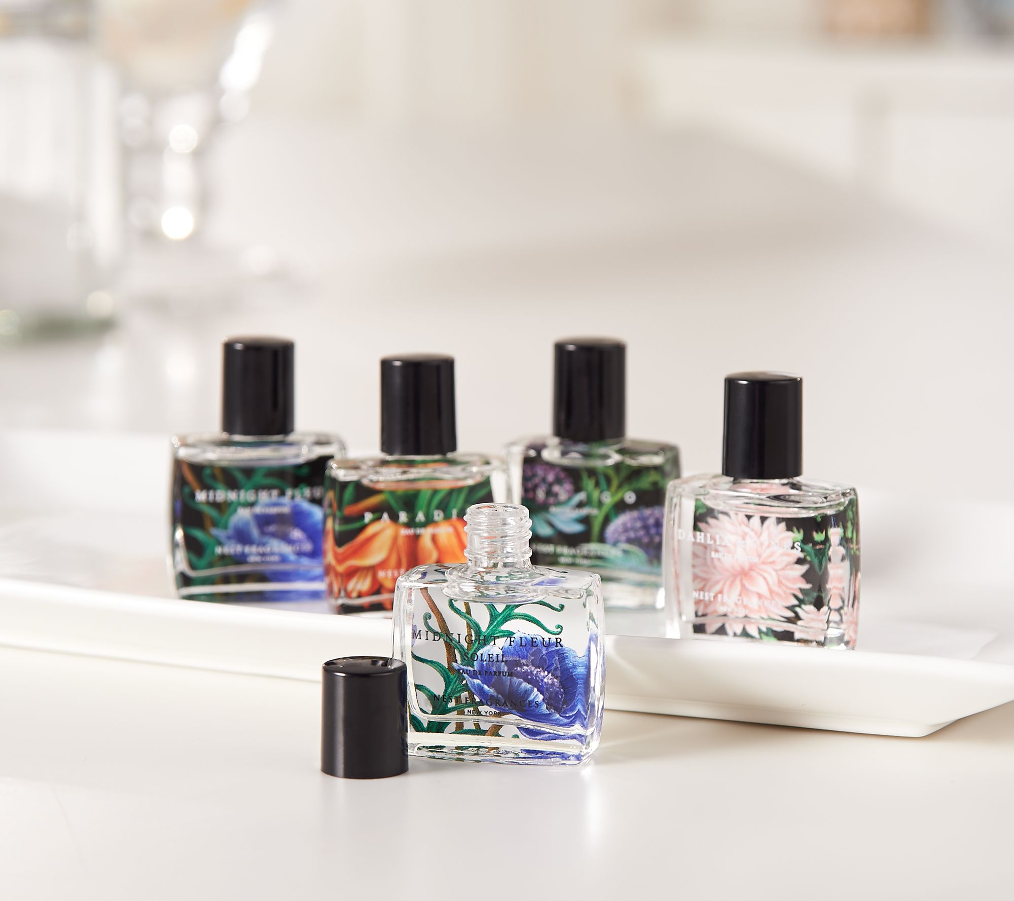 What is it: Choose a signature scent or build a fragrance wardrobe with this NEST starter kit of five mini EDP dabbers. Feel sensual with Midnight Fleur, playful with Midnight Fleur Soleil, romantic with Dahlia & Vines, exotic with Indigo, and cheerful with Paradise.