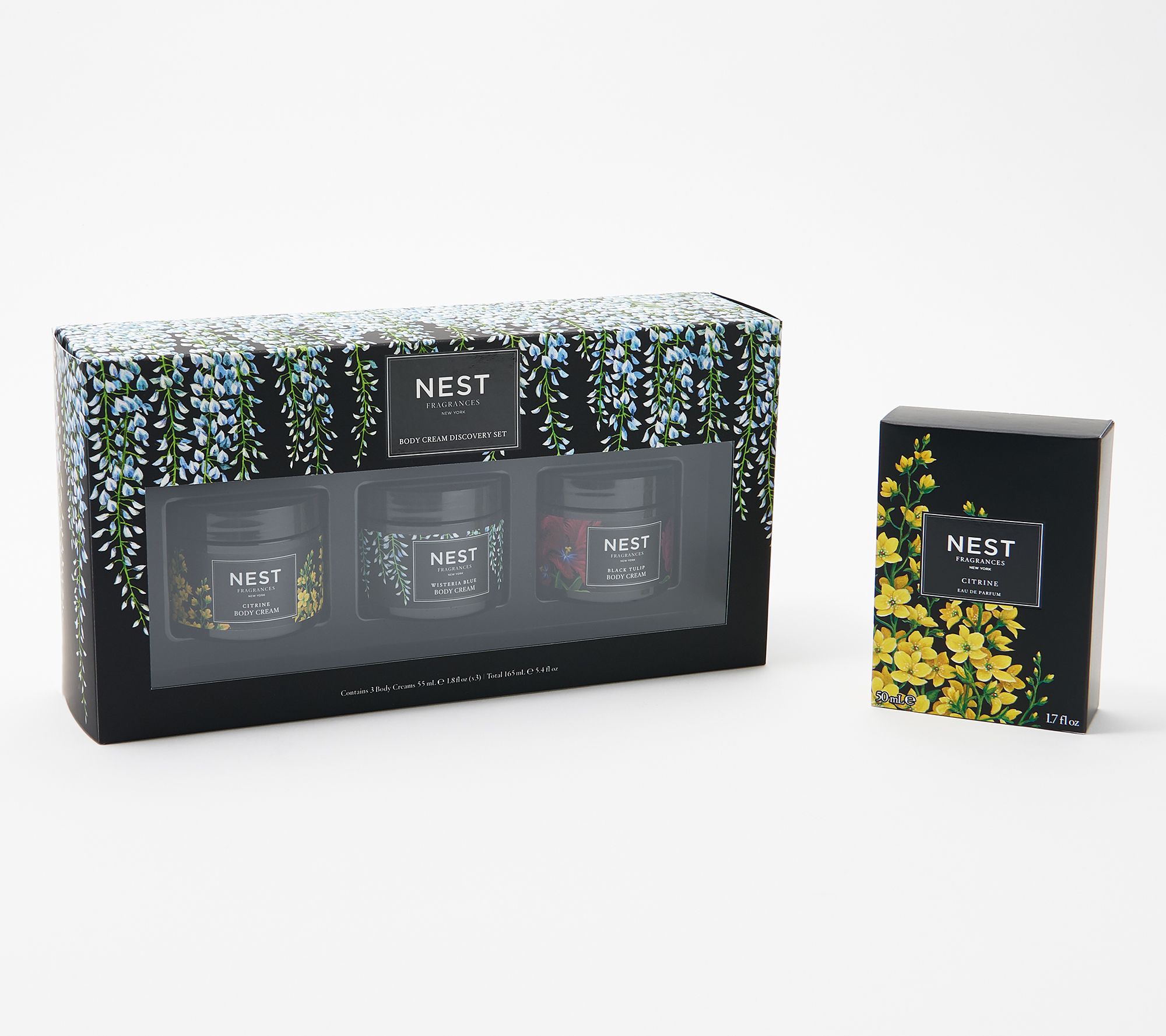 This eau de parfum and deluxe body cream kit from NEST Fragrances offers you your favorite scent plus two additional hand creams to try! Each scent allows you to express a different mood; whether seductive, happy, or ethereal. Create your own fragrance wardrobe, changing your scent as often as you like.