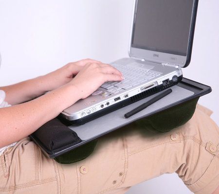 Think outside the cubicle. If you need to take your laptop with you, make sure you also bring along this portable lap desk. Constructed with a sturdy, nonskid surface to support and steady your computer, it also keeps you comfortable with a microbead cushion underneath and a padded wrist support on top. Make a favorite chair, your bed, or even an outdoor spot your new workstation.