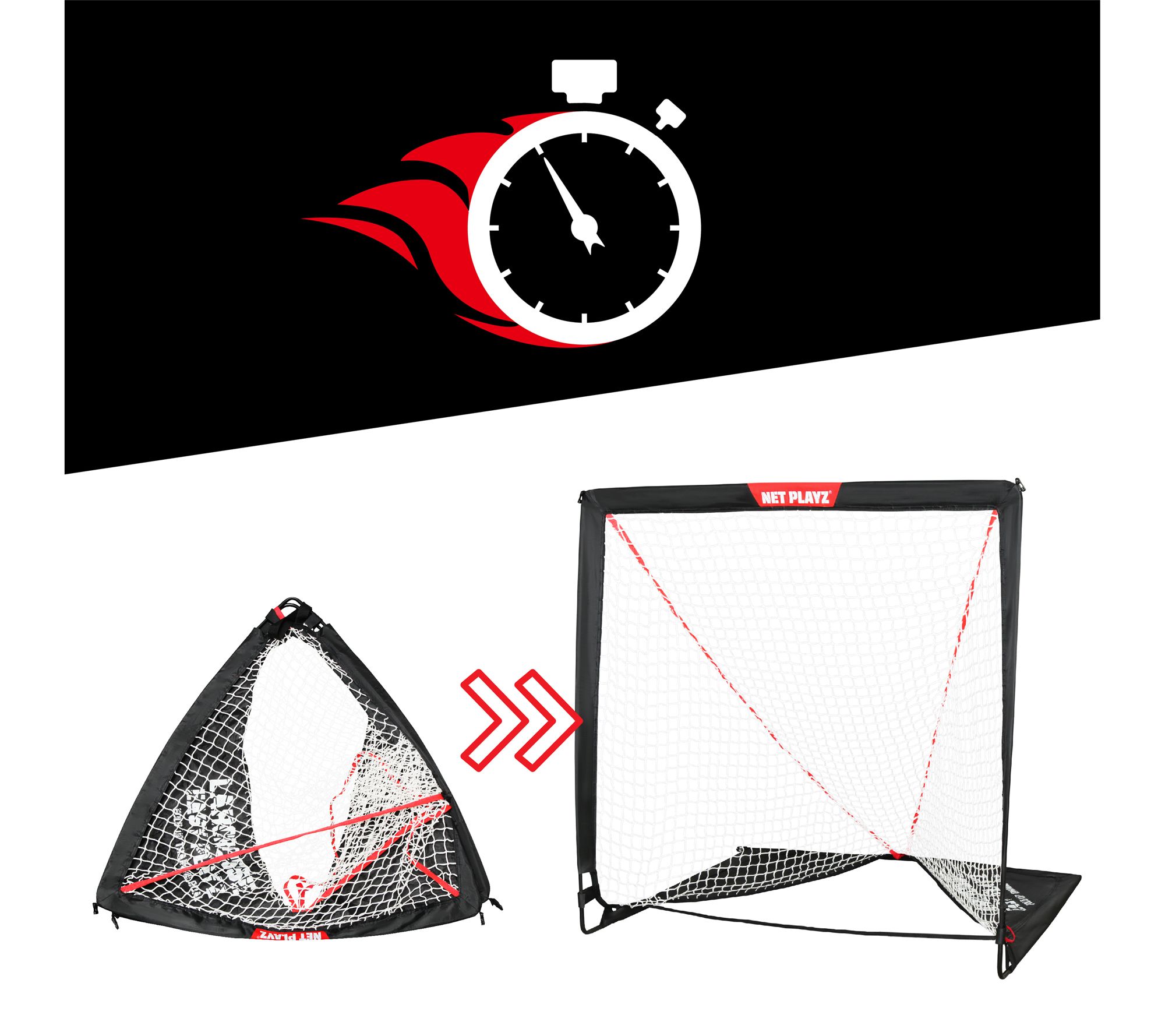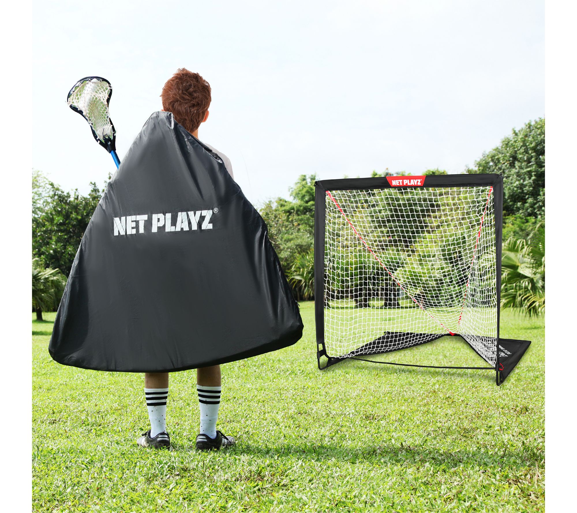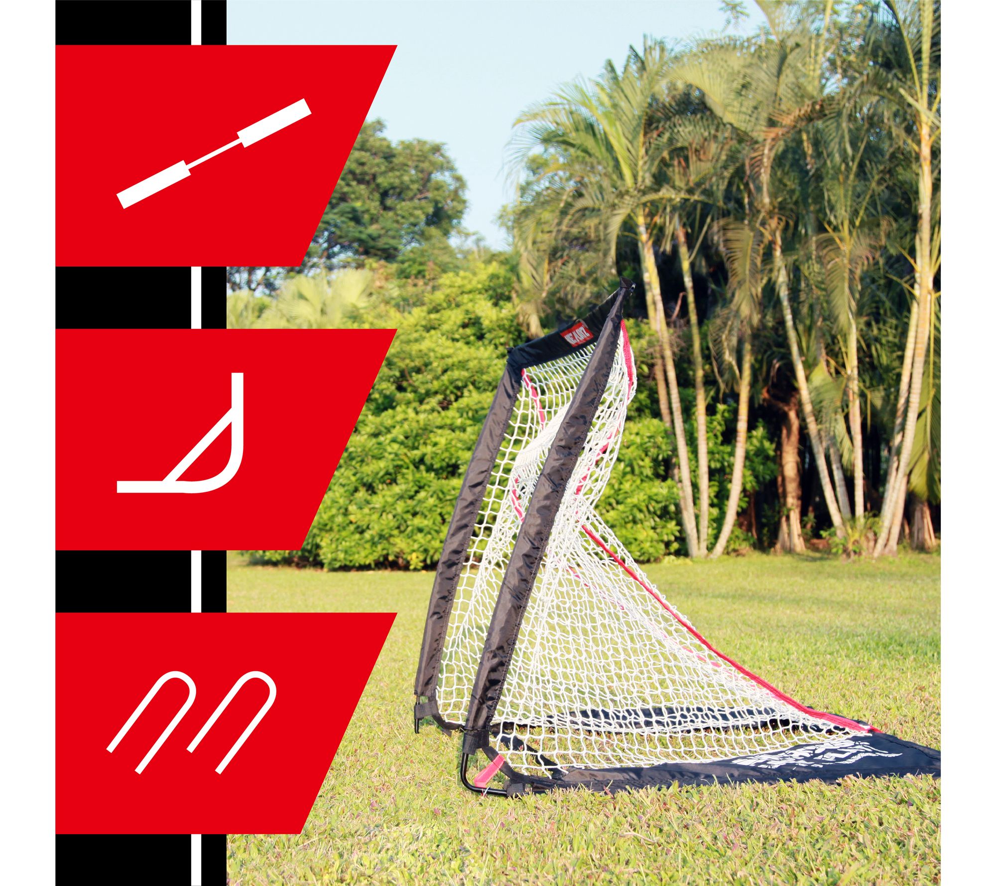 Set up your lacrosse practice anywhere with the Net Playz 4x4 lacrosse goal. Easy to assemble with fiberglass poles and metal u-joints, this goal folds up in seconds for effortless transport and storage. Perfect for indoor or outdoor use, it comes with metal stakes for stability outside or can be weighed down with water bottles indoors. From Net Playz.