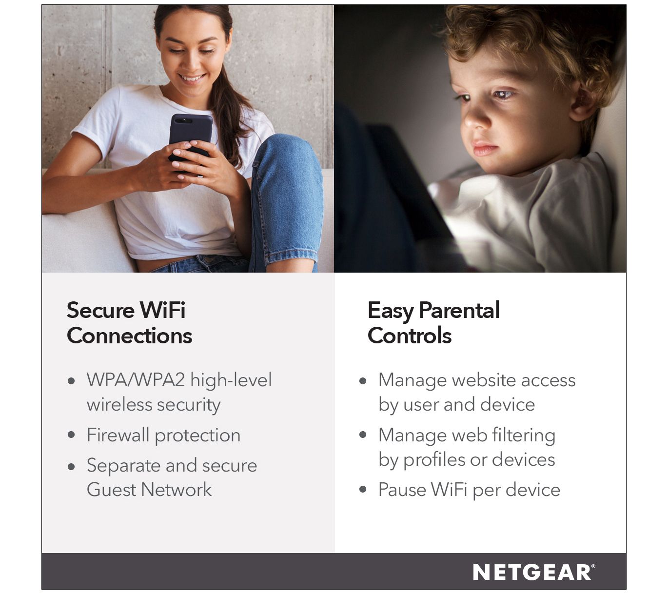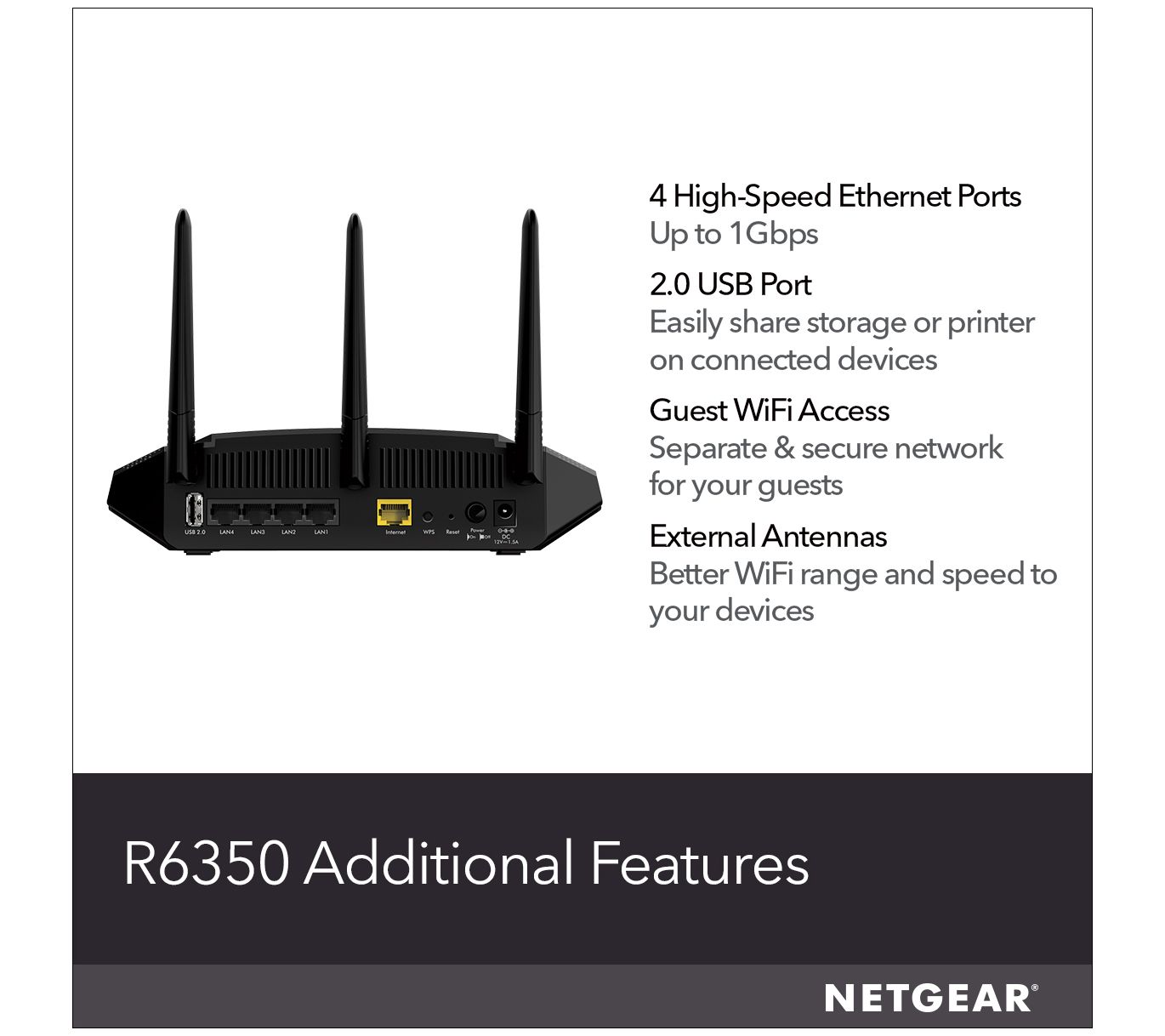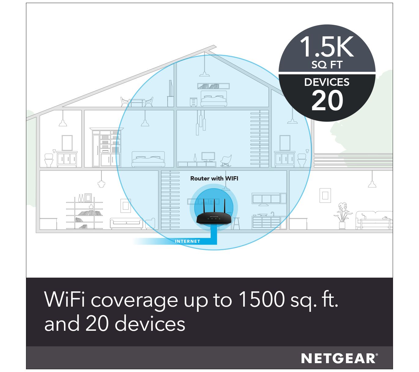 Give your home network a much needed boost with this AC1750 Smart Wi-Fi router. Delivering AC1750 Wi-Fi and gigabit Ethernet speeds, this router provides reliable connections for your family's growing collection of devices -- from your work laptop to your teen's smartphone to your toddler's tablet. From NETGEAR.