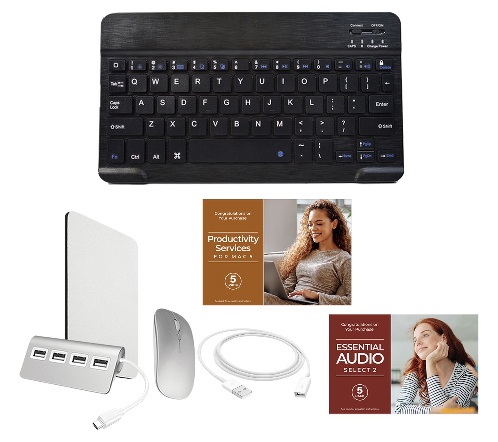 Plus, you'll also receive a variety of accessories to get you started, like a Bluetooth keyboard, wireless mouse, and more!