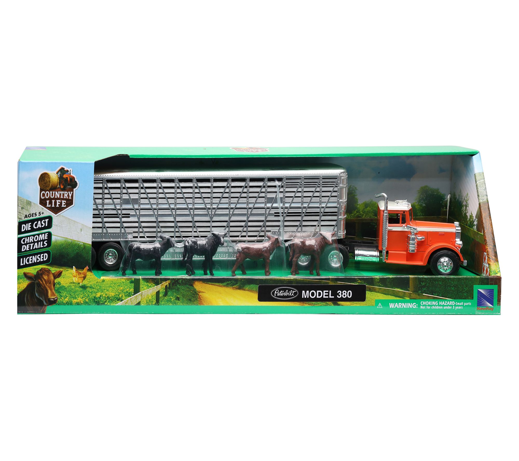 • Includes truck, trailer, two black cattle, and two brown cattle