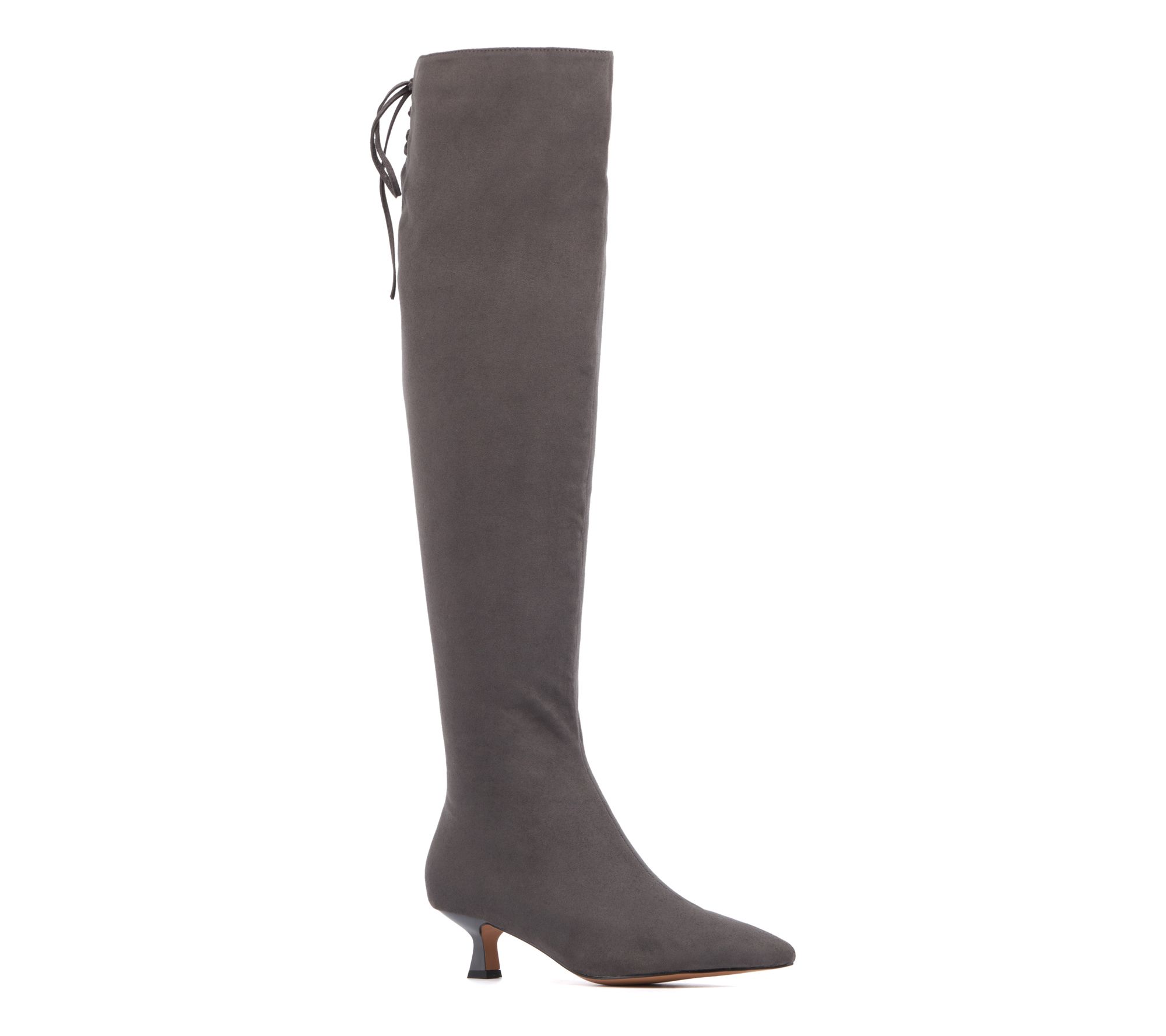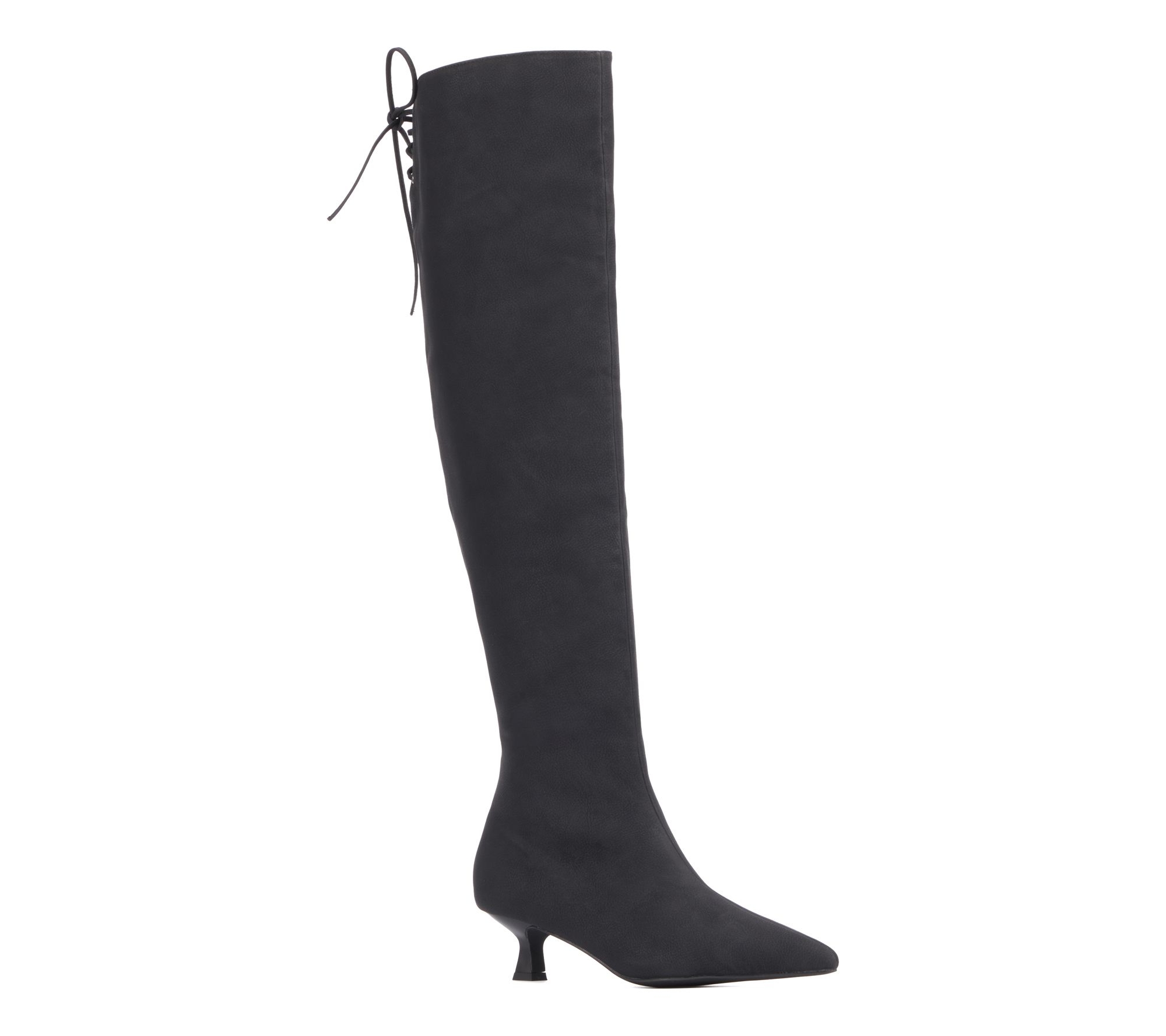 • Measurements: Kitten heel 1.75"H; Shaft 19.25"H; Shaft circumference 16"