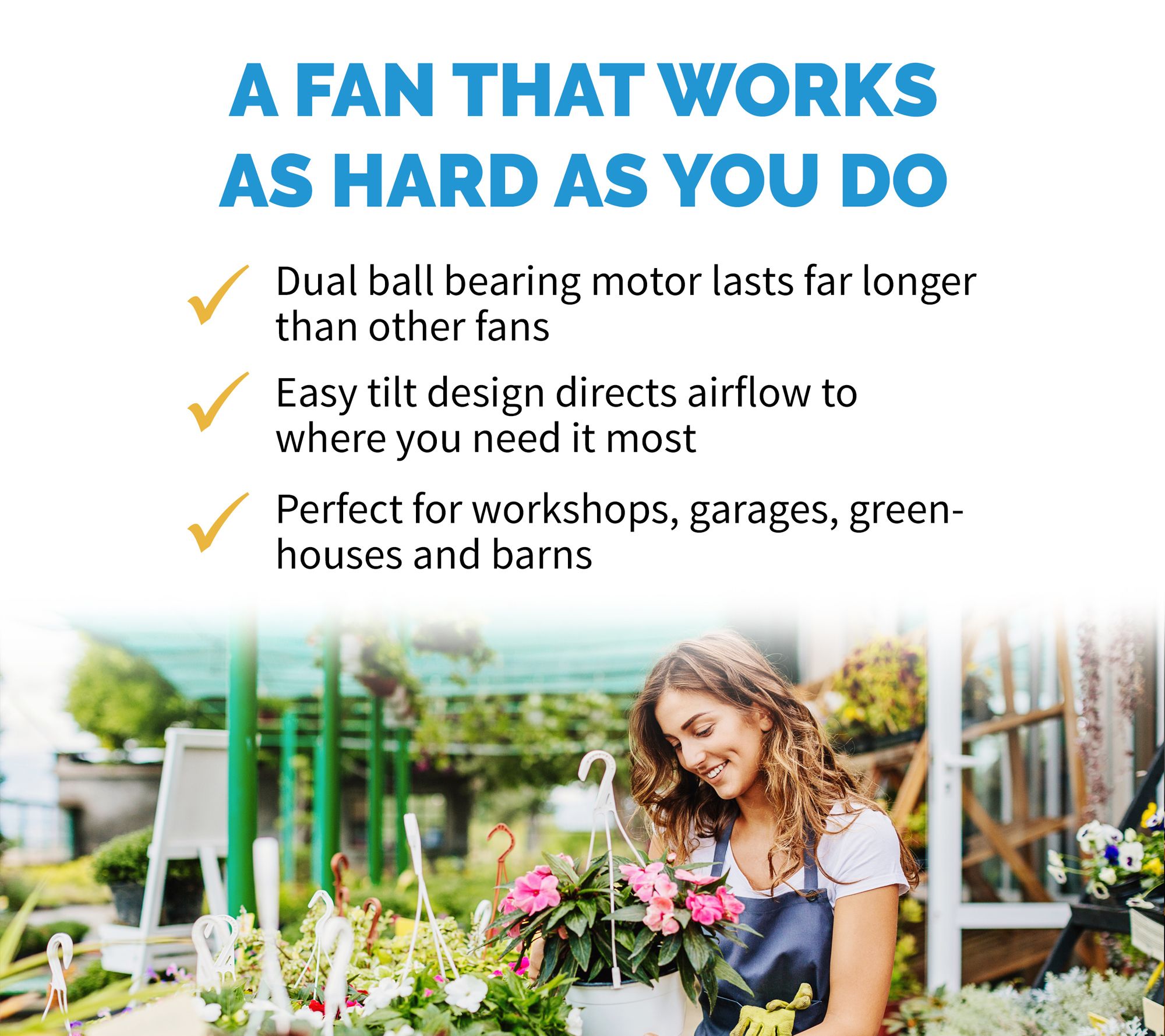 • Three fan speeds and metal blades for up to 4,650 CFMs of power