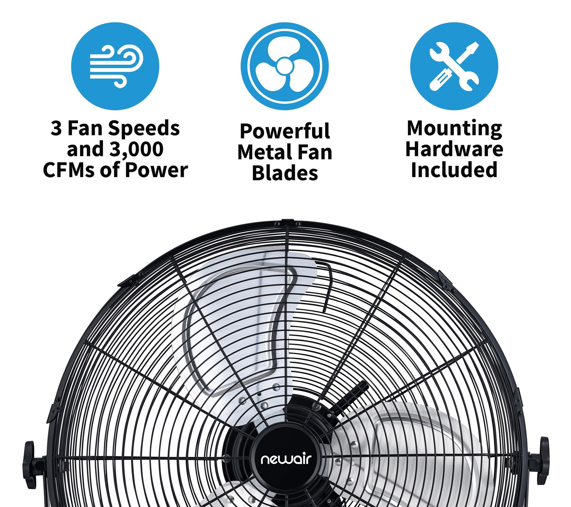 Bring powerful airflow to your indoor or outdoor space with the Newair 20" outdoor high velocity wall mounted fan. With three fan speeds and metal blades, this fan delivers up to 4,650 CFMs of power, ensuring you stay cool in any setting. The adjustable tilt head lets you direct airflow exactly where you need it, while the wall-mounted design saves valuable floor space. From Newair.