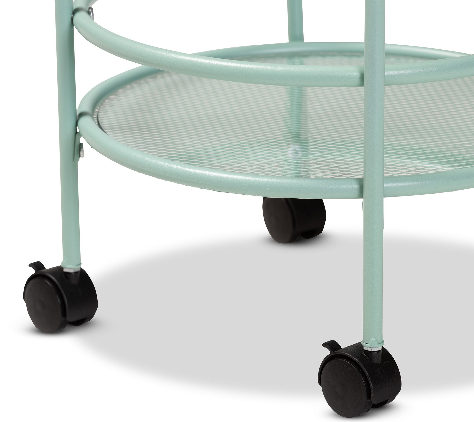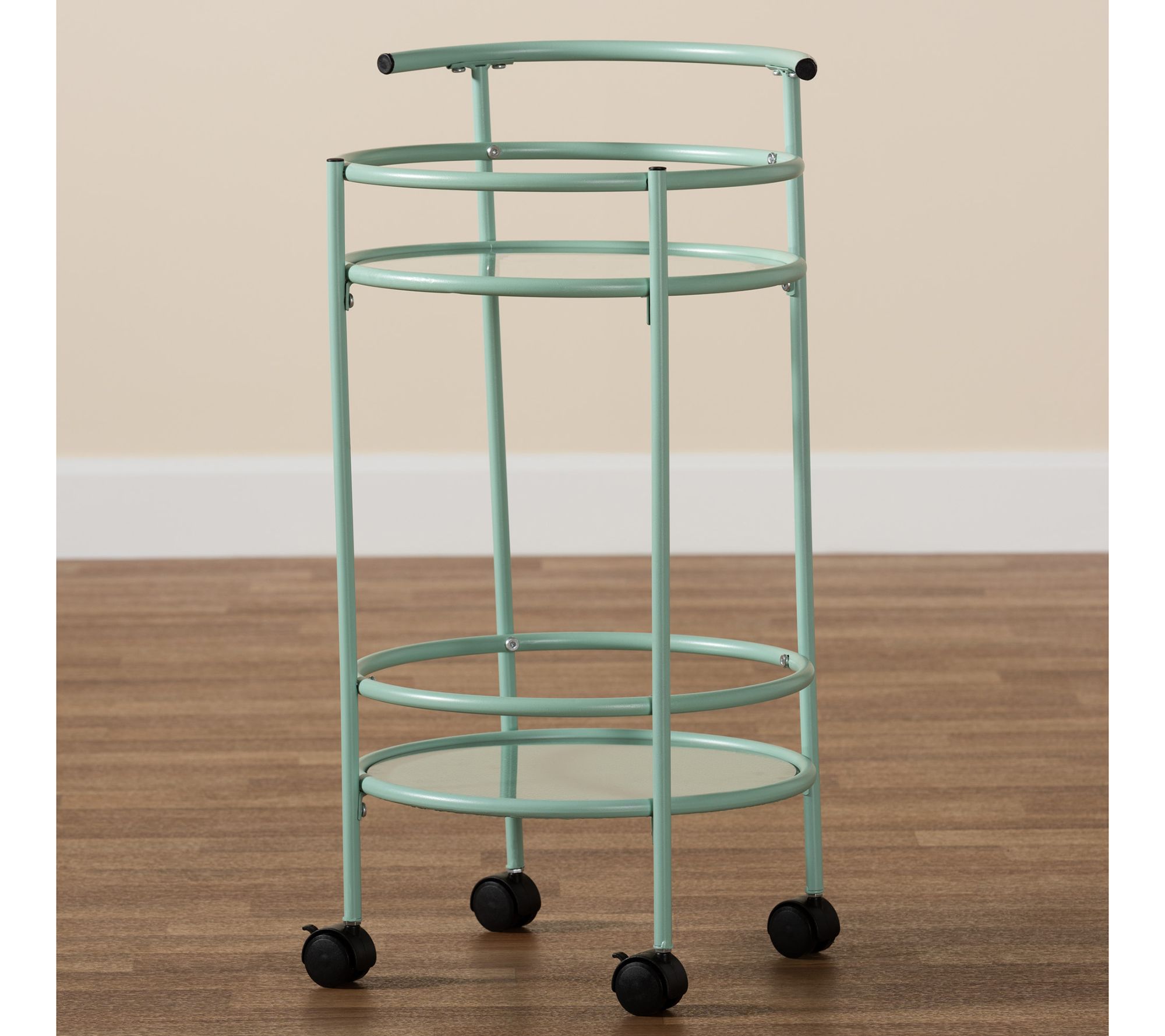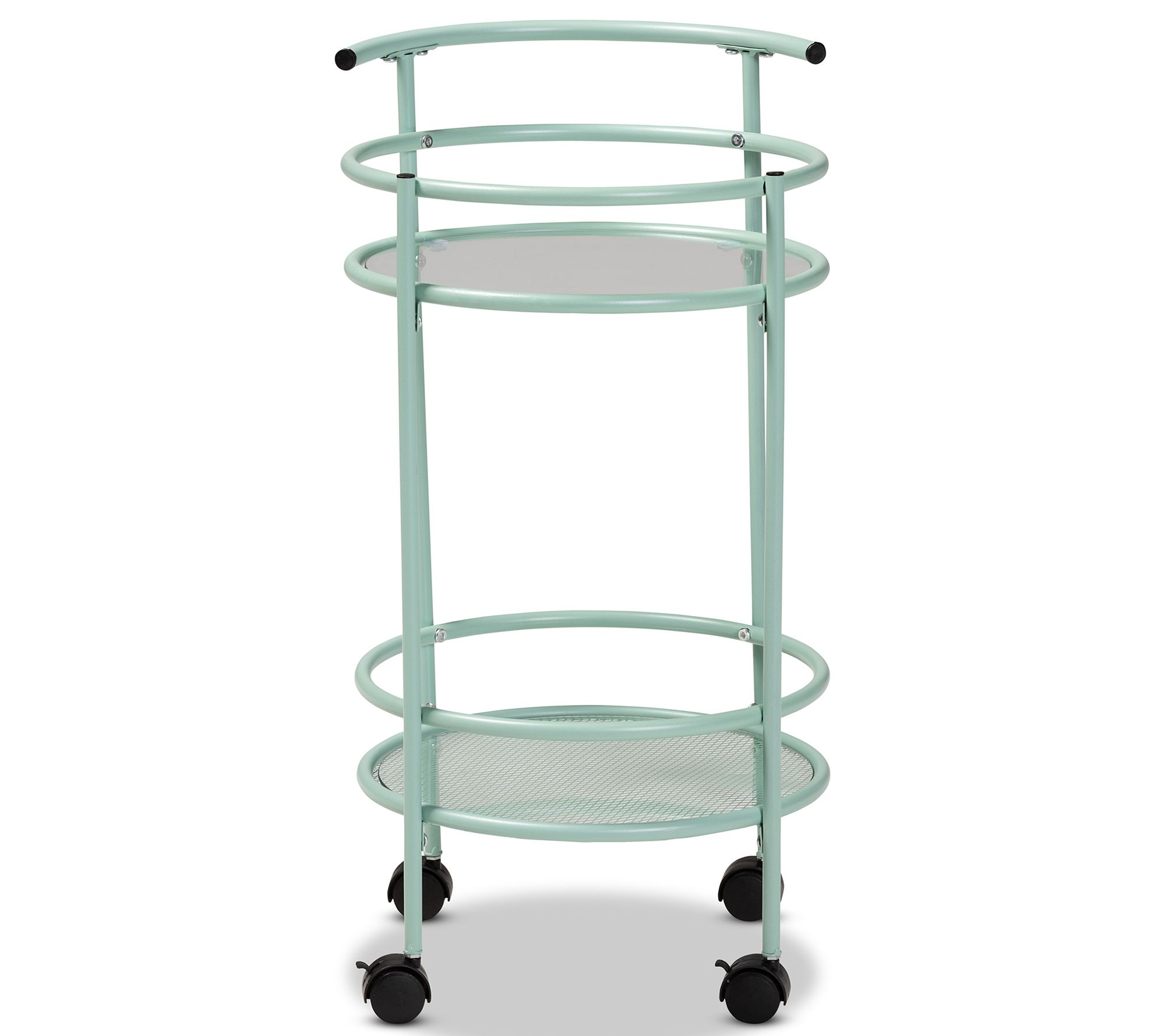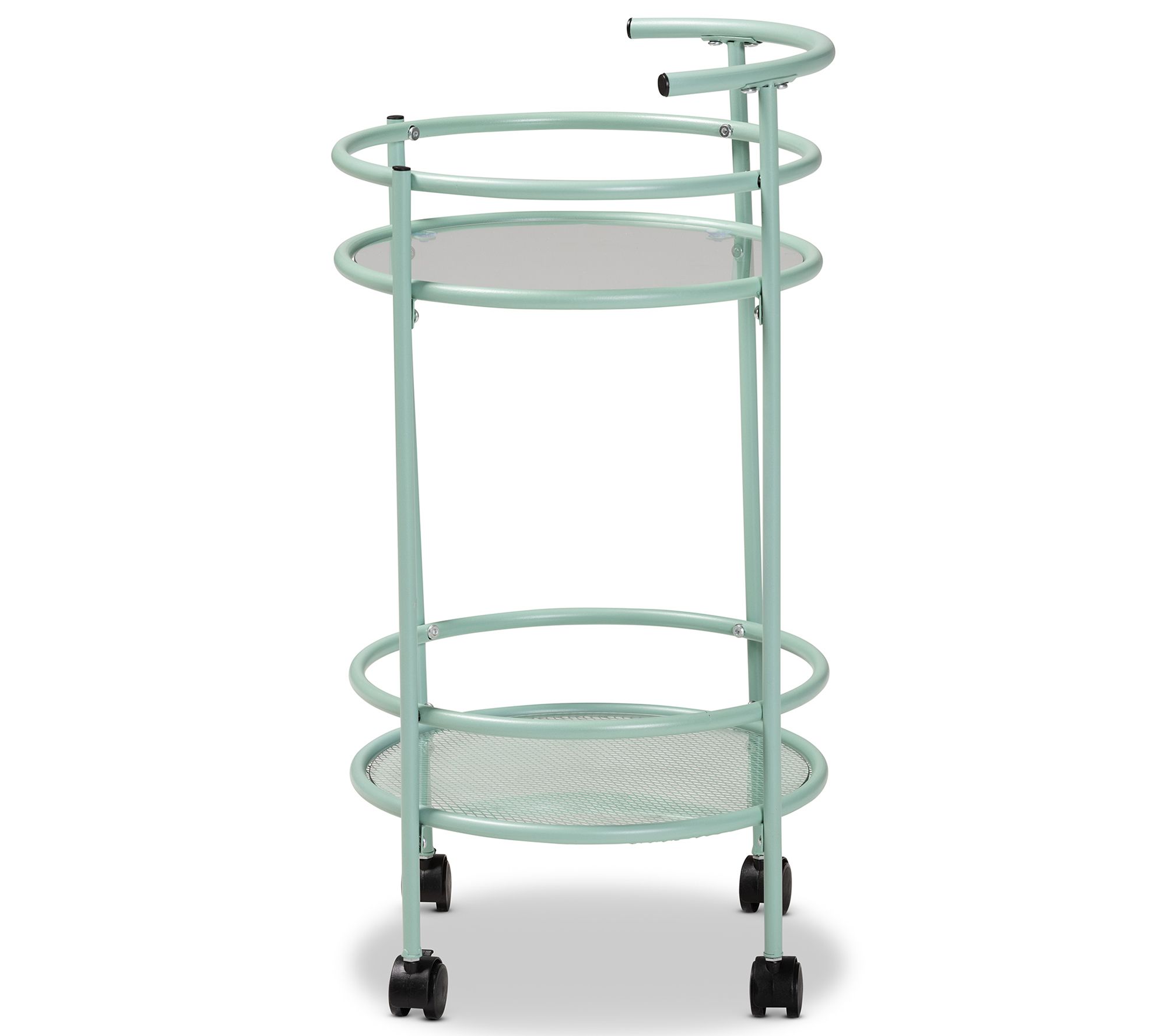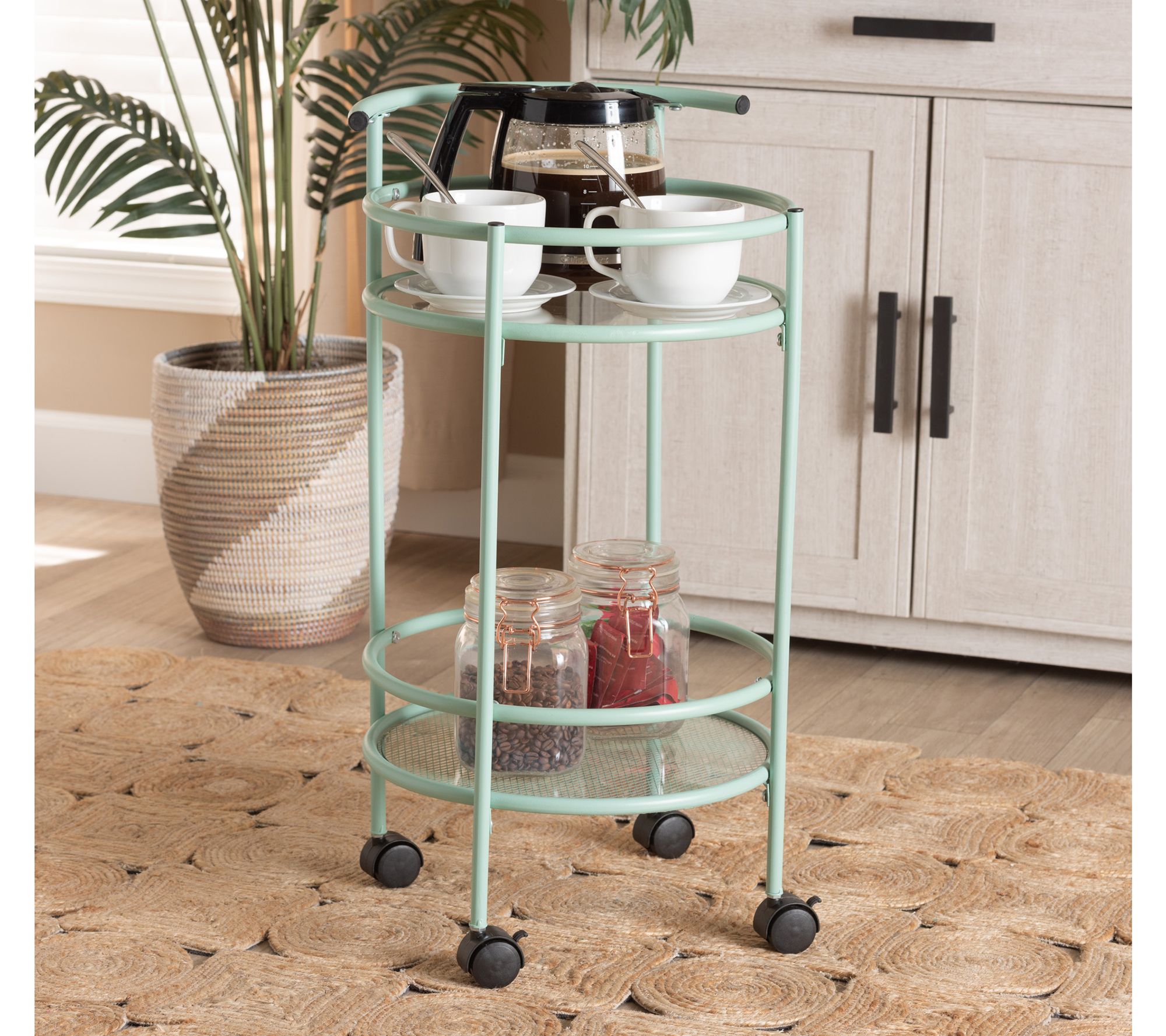 Organize everything from dry goods to bar supplies in this handy kitchen cart outfitted with two tiers and rolling wheels. From Baxton Studio.