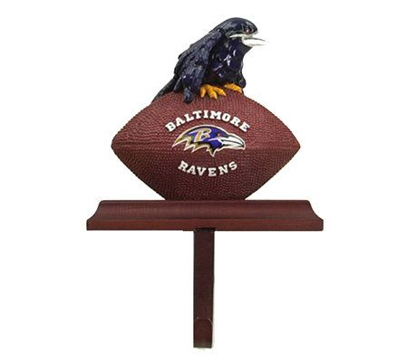 Add a little Baltimore Ravens team spirit to your holiday spirit with this officially licensed NFL stocking holder. It features the Ravens mascot proudly perched on top of a football bearing the official team logo. Simply hang your stocking from the metal hook and see what goodies Santa leaves for you. From SC Sports.