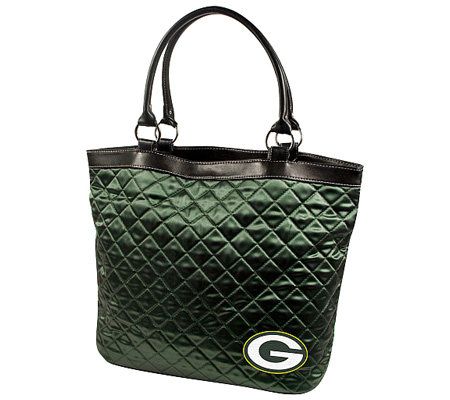 The perfect bag for fashion-forward sports fans. This NFL Green Bay Packers tote combines details like rich satin quilting, faux leather trim, and an embroidered Packers logo. From Little Earth Productions.
