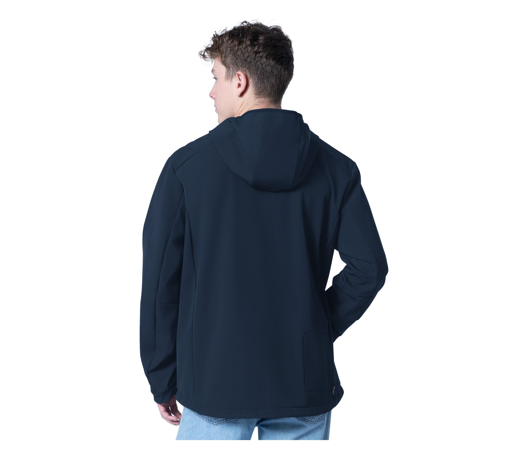 Features: soft shell, team color body, team logo print at left chest, team name at right shoulder, contrast color piping at front shoulders and neck seam, hood