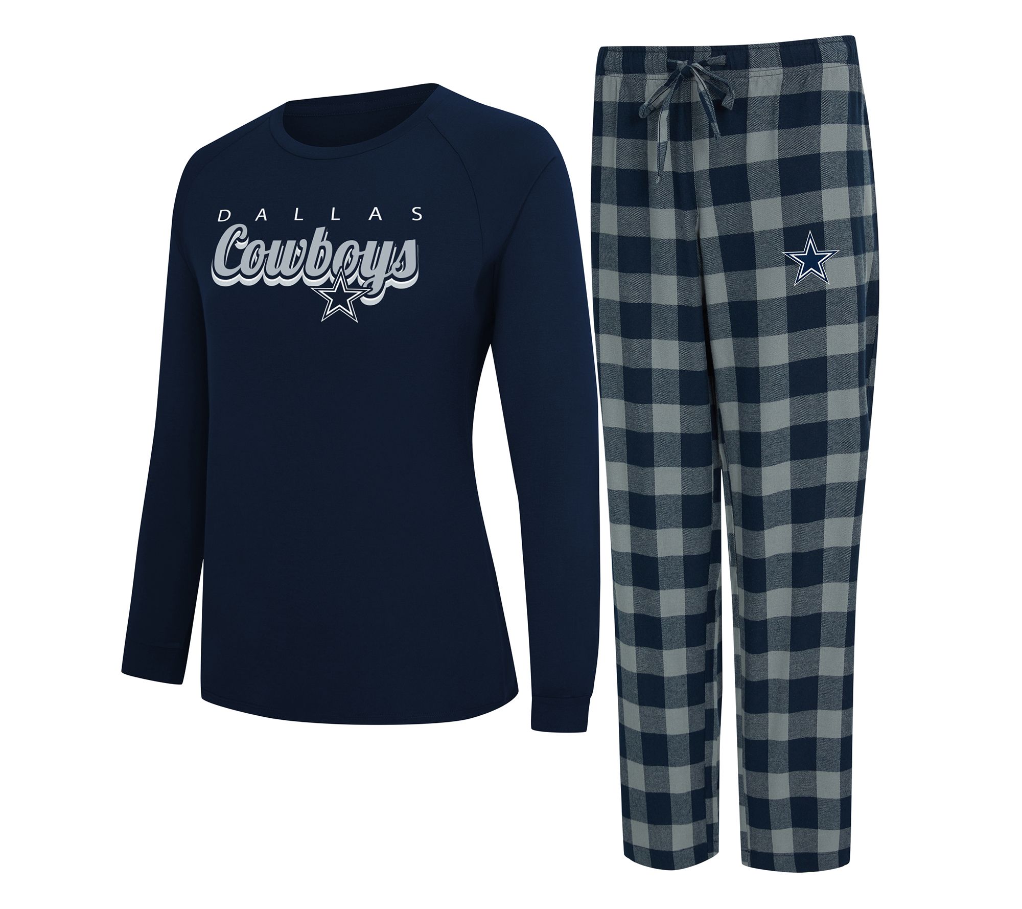 Game-day lounging just got a little more spirited with this long-sleeve tee pajama set, styled in your favorite NFL team's signature colors and finished with an embroidered logo for extra fan flair. Soft, easy-fitting pieces invite you to relax after a big win -- or prep for the next matchup -- all while keeping your team pride close, even on cozy nights in.