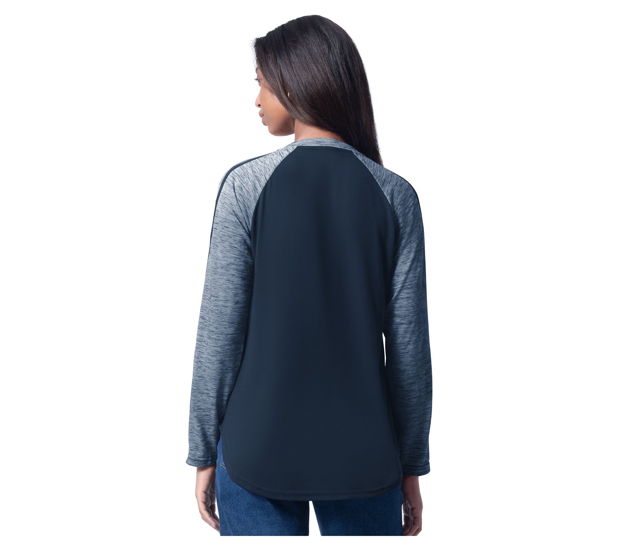 Whether you're meeting friends or watching the game at home, this spirited long-sleeve tee brings a fun pop to your outfit with its glittered team logo. Its comfortable fabric and easy style make it a favorite pick whenever you want to show off your team pride. From NFL.