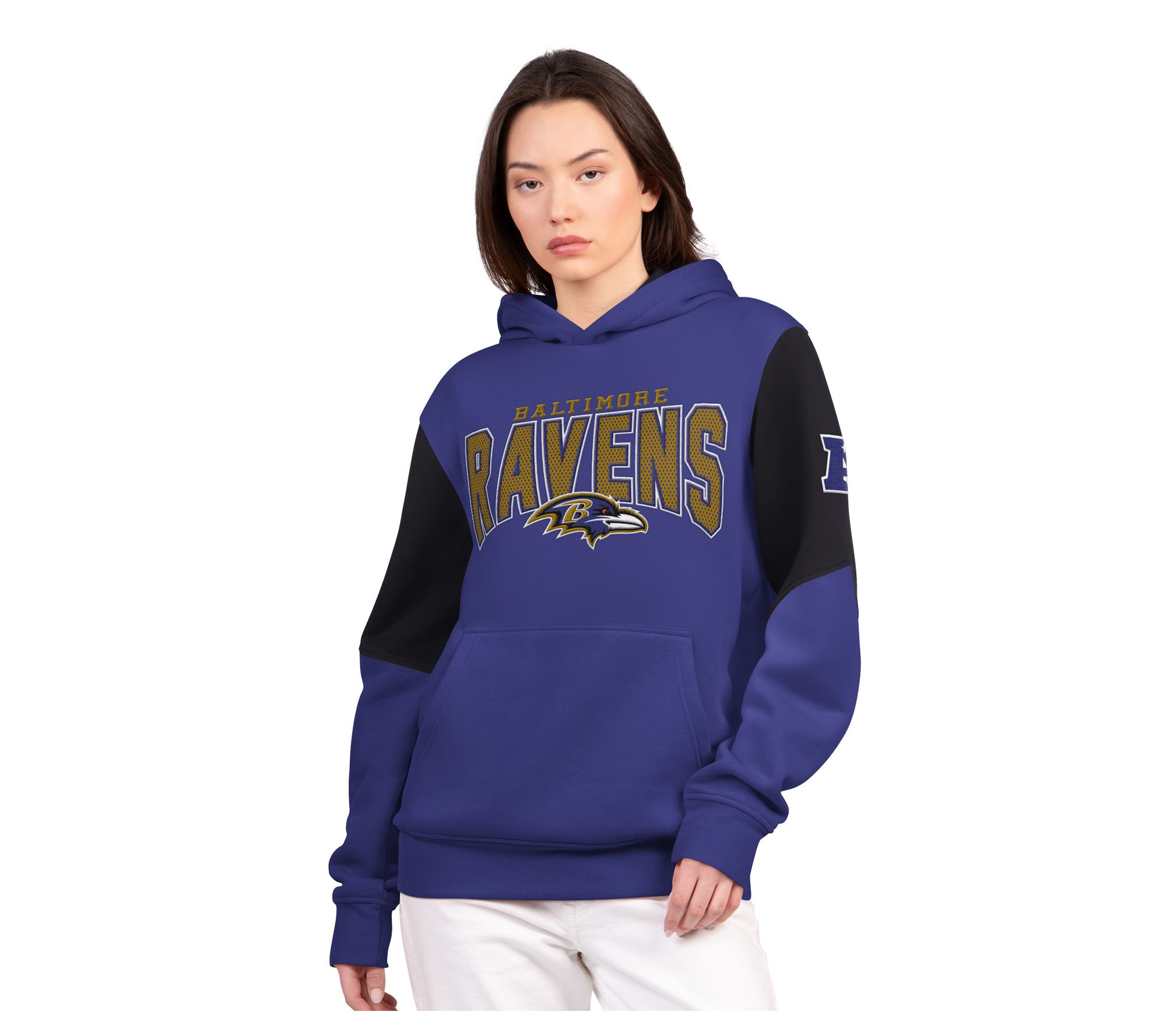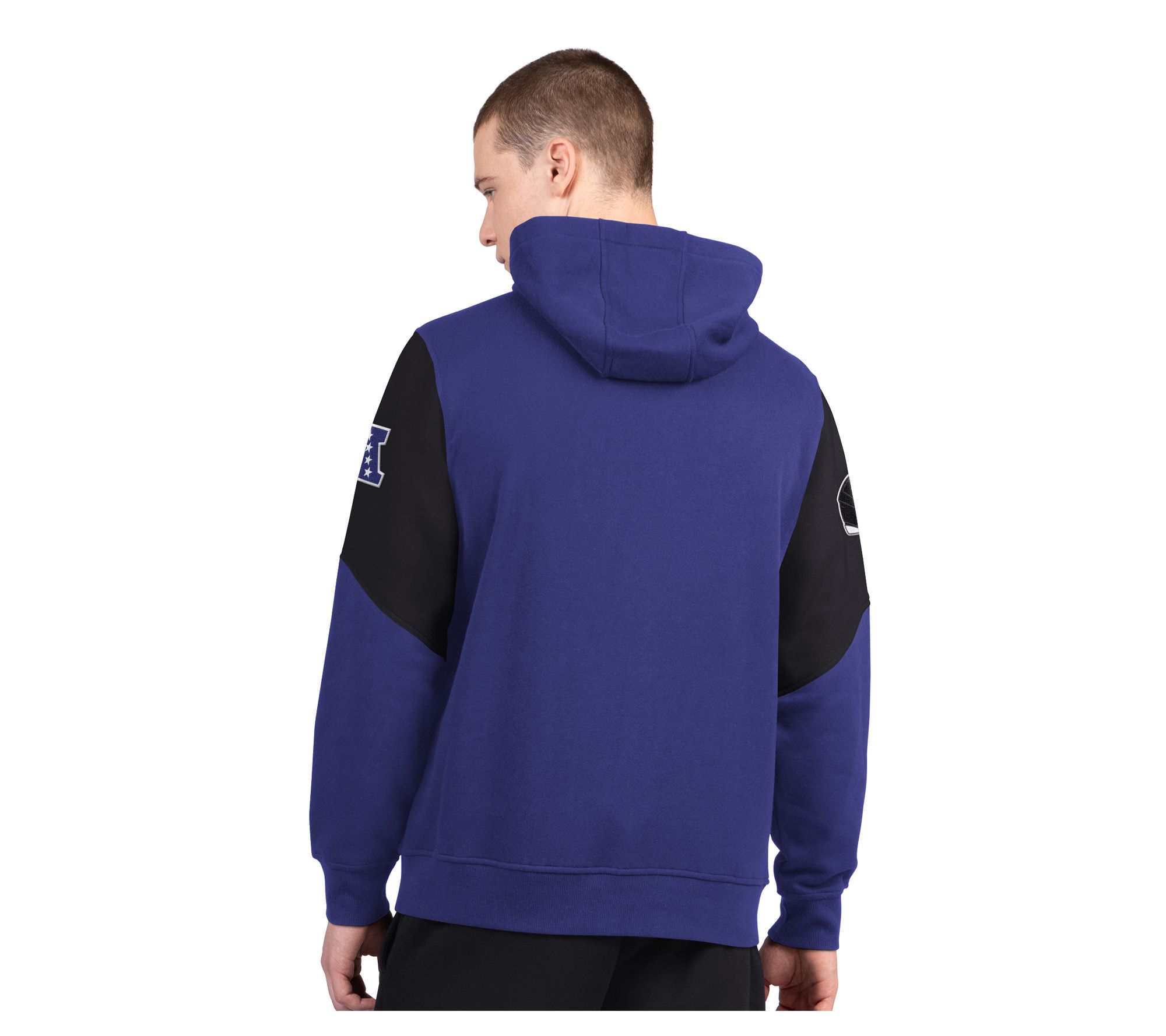 • Features: embroidered team, city, and name on front chest with mesh inlay; team helmet and conference on sleeves; sleeve stripes and contrast hood in secondary team color
