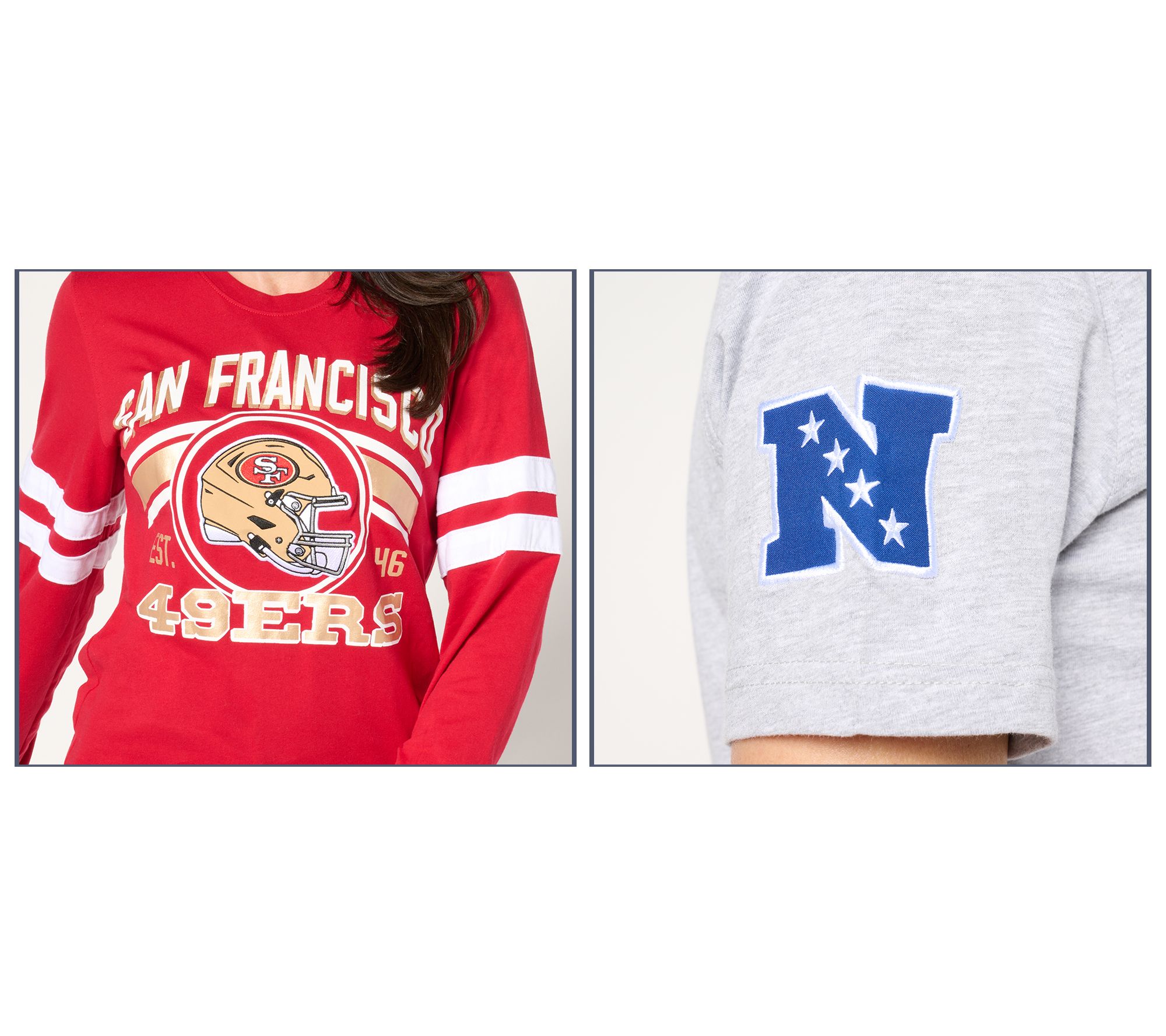 Go for the two! Whether the temps are in the 70s or a little chillier, you'll be all geared up for game day (or geared up for gifting!) with this officially licensed NFL set that includes a short-sleeve tee and a long-sleeve shirt. With bold team colors, striking graphics, and high-quality designs, each stadium-loving staple is sure to become a fan favorite in your wardrobe rotation. Plus, they make the perfect present for those hard-to-buy-for football fans. What are you waiting for? Wear one and share one. Or keep both and gift a set. Either way, you can't lose.