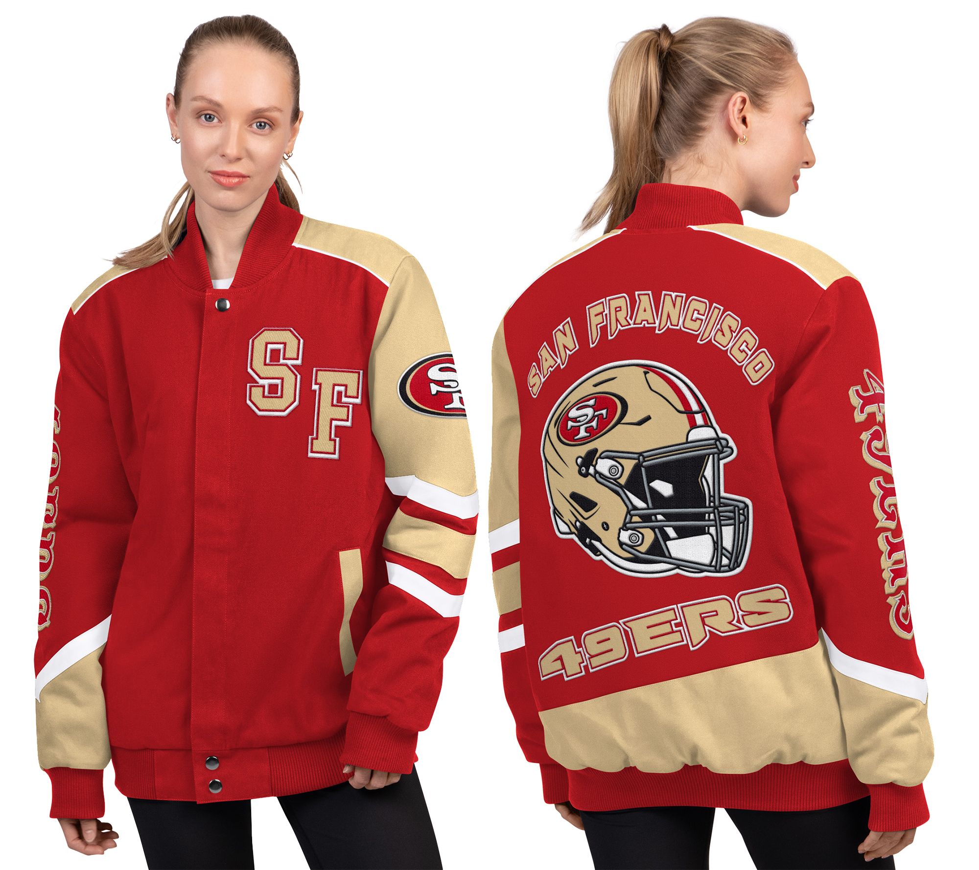 Football fans, start your engines! This NFL racing jacket is a winning pick for chilly tailgates, spirited watch parties, and evenings out with fellow fans. It sports bold team colors and sharp color blocking throughout, plus embroidered details for unmistakable team pride. Roomy pockets provide a place to stash pitstop snacks and your phone.