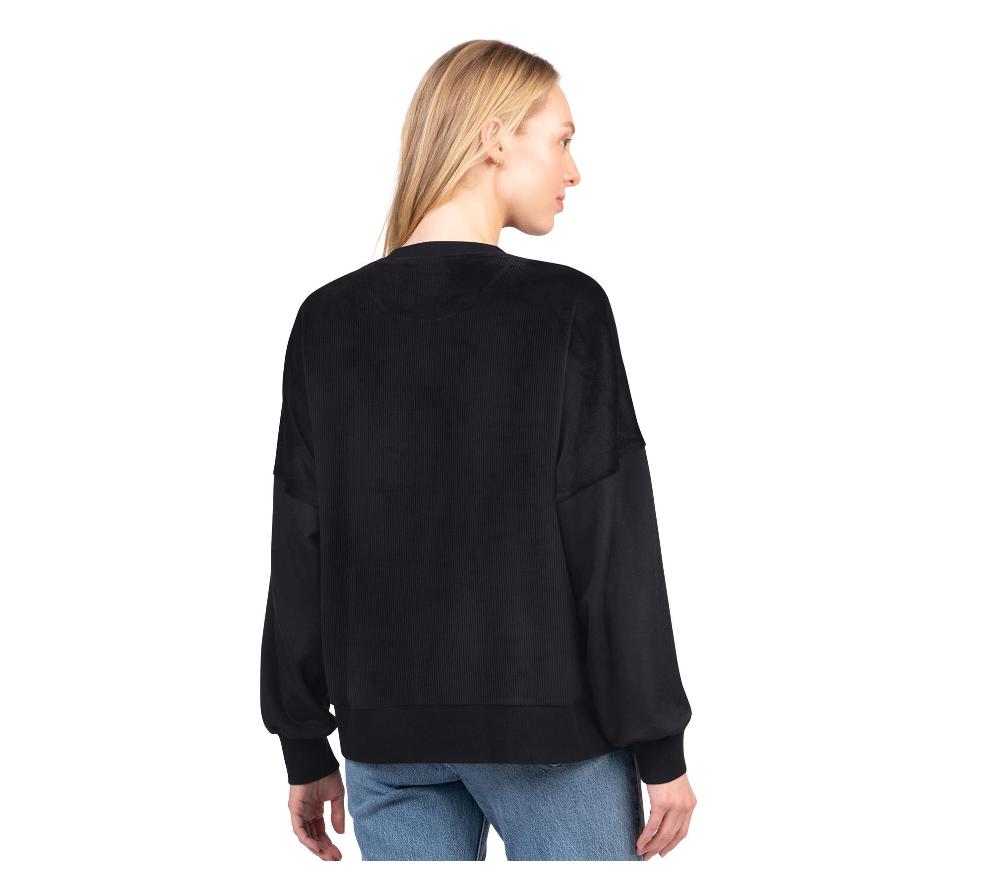Show your support -- and make it as soft as possible -- with this velvet cord crewneck. This game-day go-to embraces your team spirit in plush comfort, with a soft stretch fabric that's perfect for showcasing your fandom.