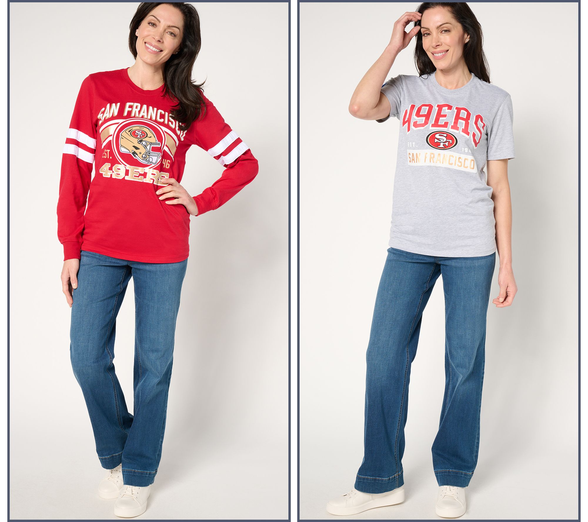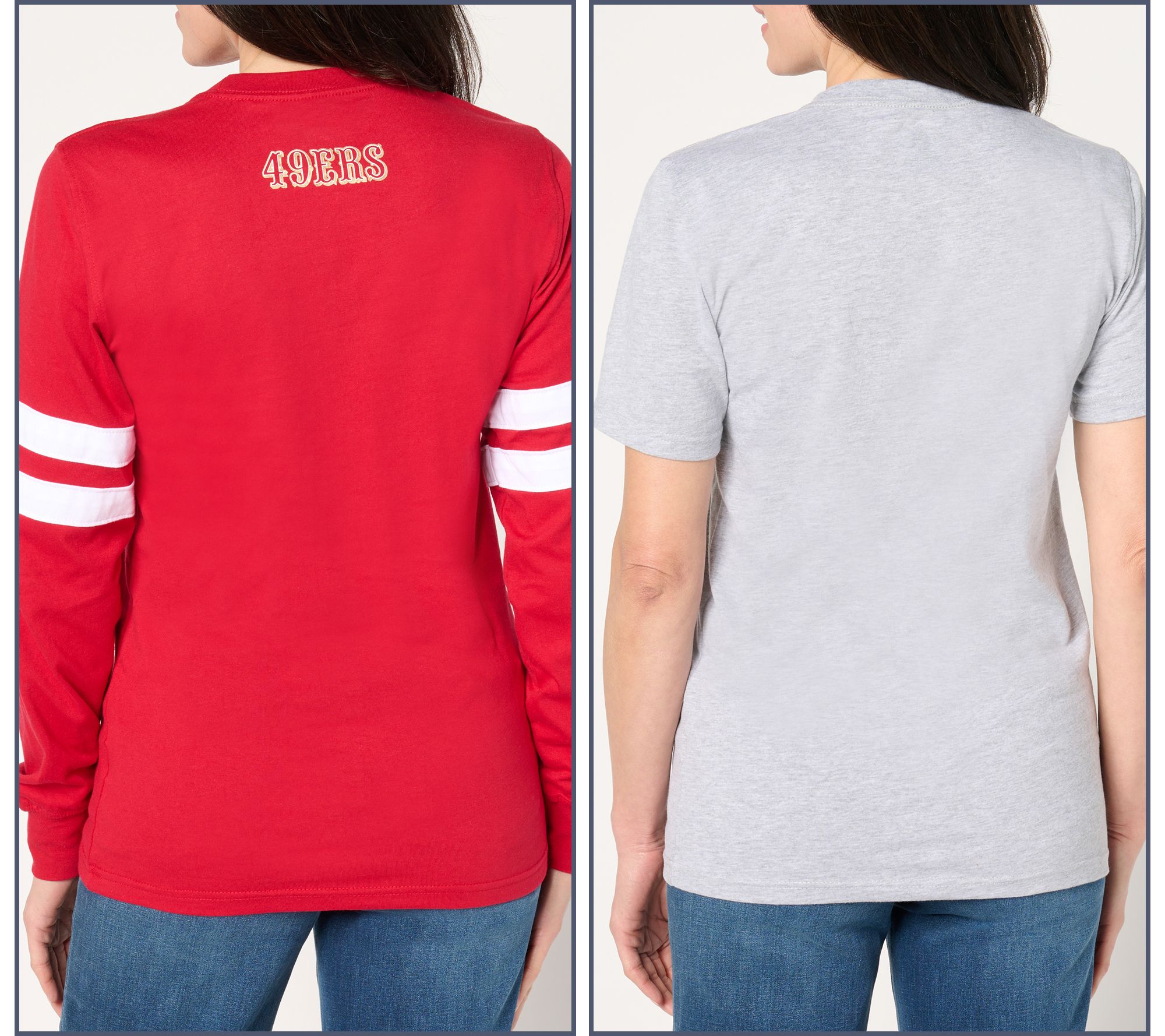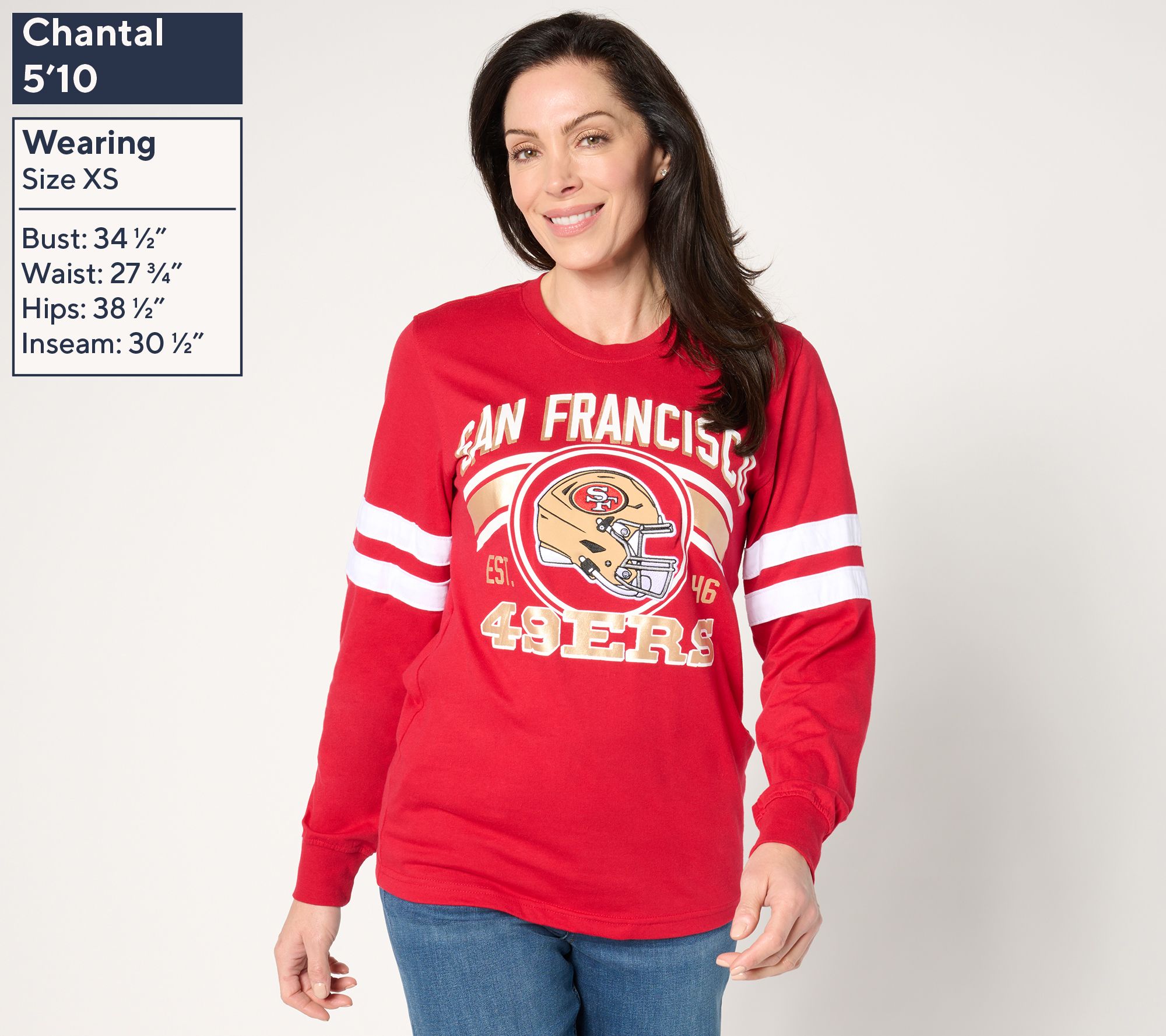 Your NFL team spirit is on display throughout every season with this women's short- and long-sleeve T-shirt set. Whether you're cheering from the living room, heading out to the stadium, or meeting friends at the local watering hole, officially licensed graphics and bold colors deliver fan energy in two comfortable options.