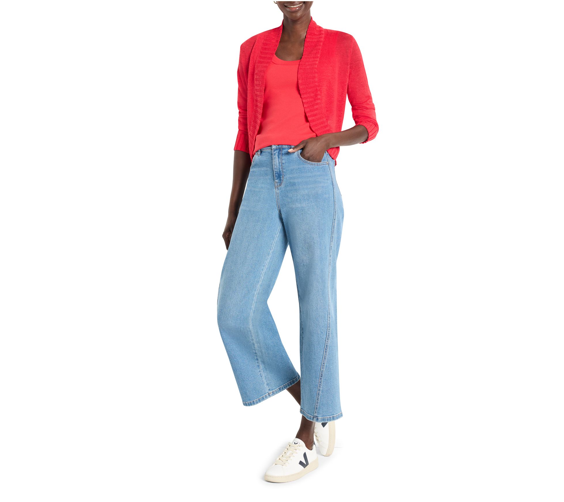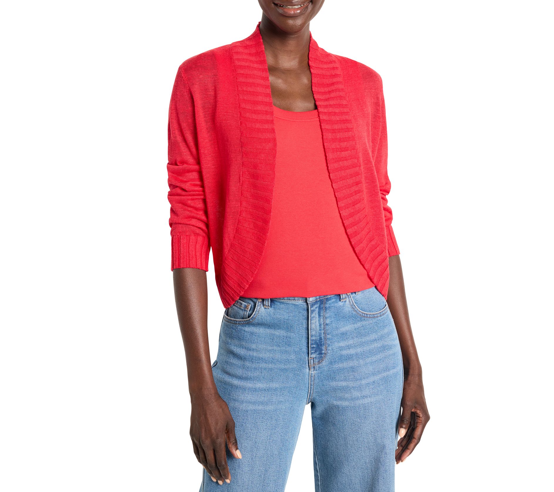 Elevate your layering game with this NIC+ZOE bolero cardigan. Knit from feather knit linen viscose yarn, this piece blends the coverage of a cardigan with the chic style of a bolero. Perfect for dressing up or down, it's detailed with rib finishes along the open front, collar, and extra-long cuffs. From NIC+ZOE.
