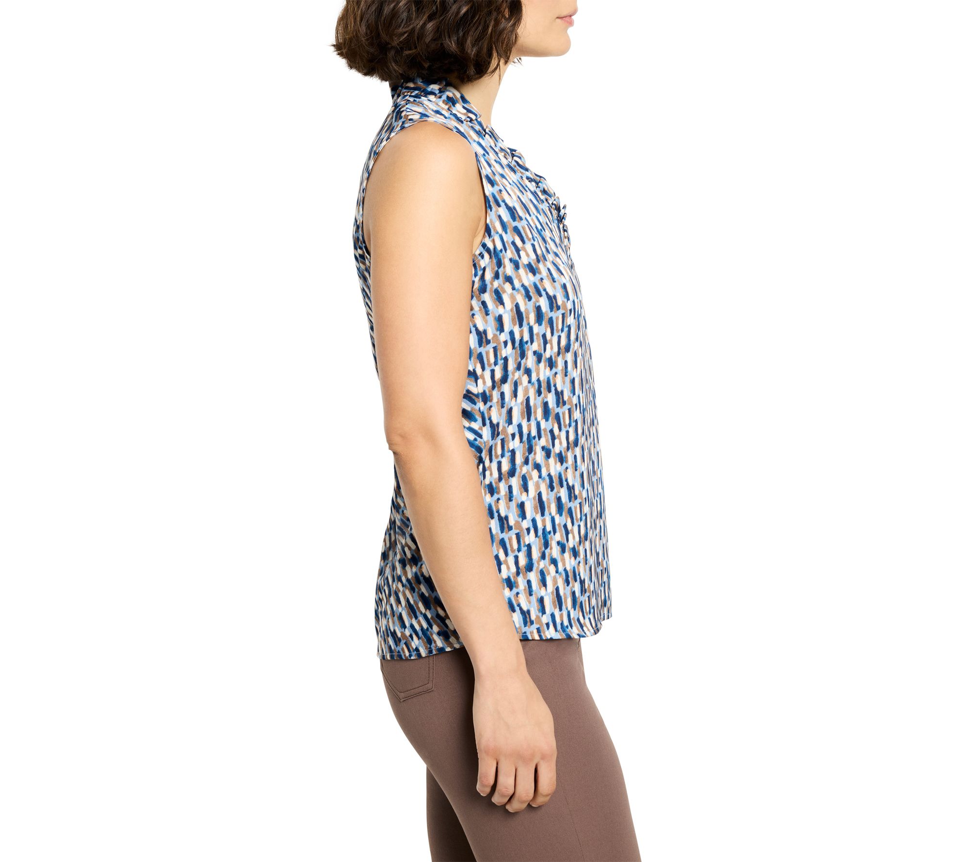 Add a splash of artistic flair to your wardrobe with this ruffled collar tank, featuring a vibrant brushstrokes print and breezy woven fabrication. Effortlessly layer it under a blazer for workdays or pair with jeans for easy weekends -- its flat ruffle detail ensures smooth styling every time. From NIC+ZOE.