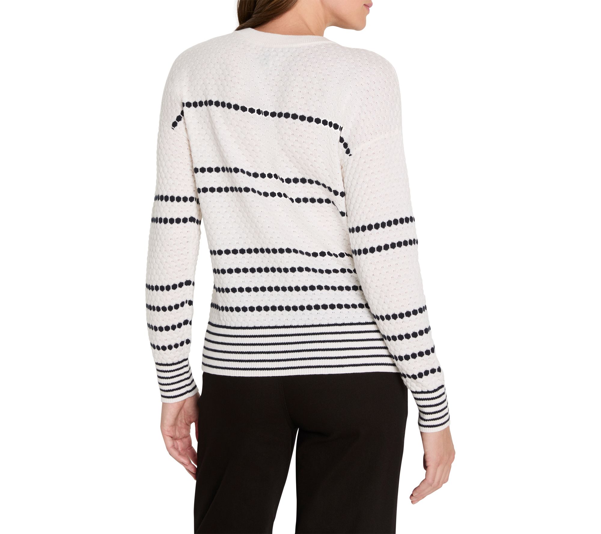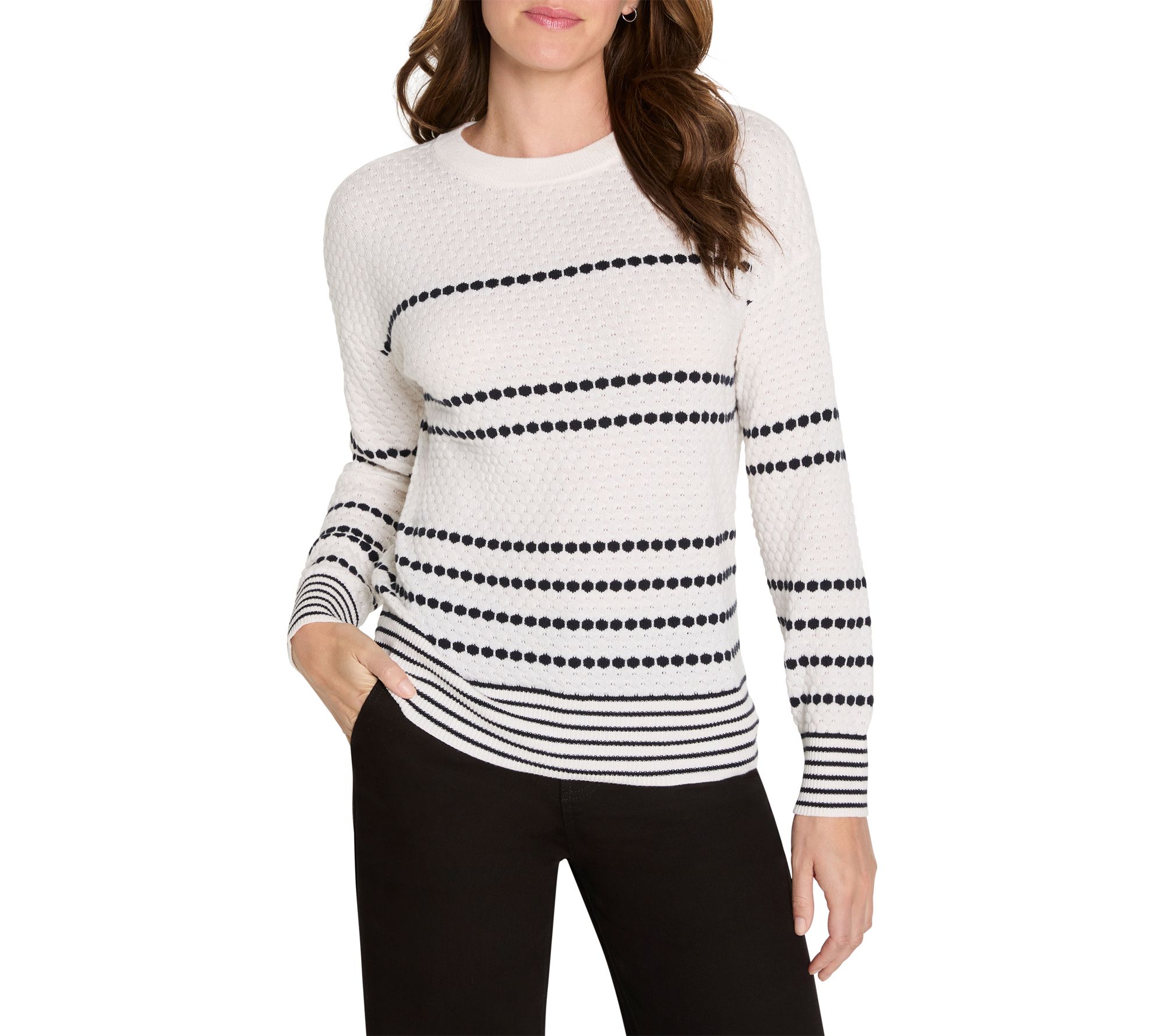 There's nothing like the feel of this cotton-nylon-cashmere sweater! In NIC+ZOE's luxe blend that offers stretch and movement -- with shaped circle stitching for extra texture -- it's destined to become the highlight of any sweater drawer. Pairs perfectly with denim or dressier ensembles. From NIC+ZOE.