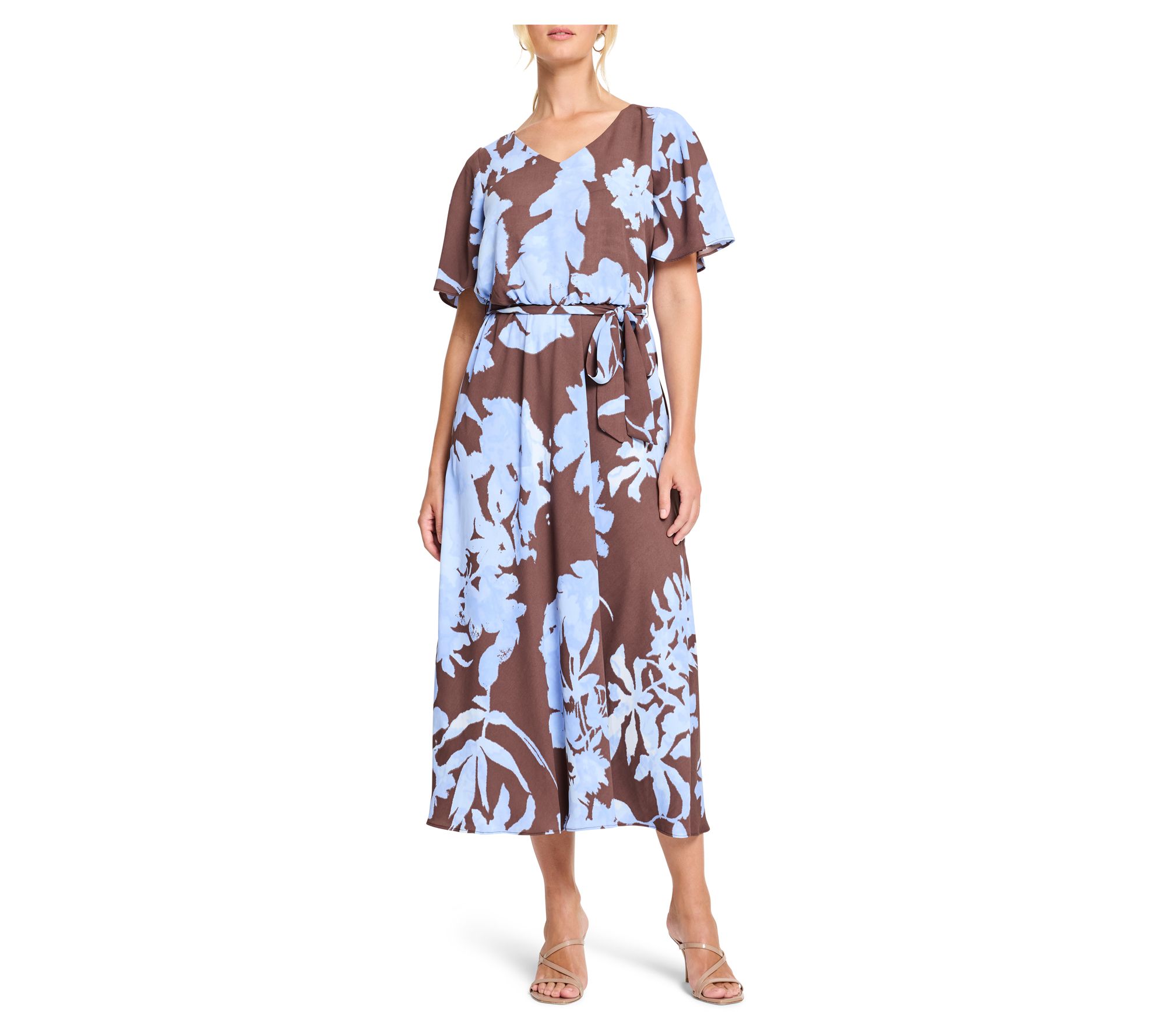 From casual events to work days, this dress delivers effortless elegance with its Cloud Blossom print and versatile Brooke silhouette. The V-neckline and fun fluttery elbow-length sleeves add flair, while the lined bodice and belt tie at the waist provide structure. From NIC+ZOE.