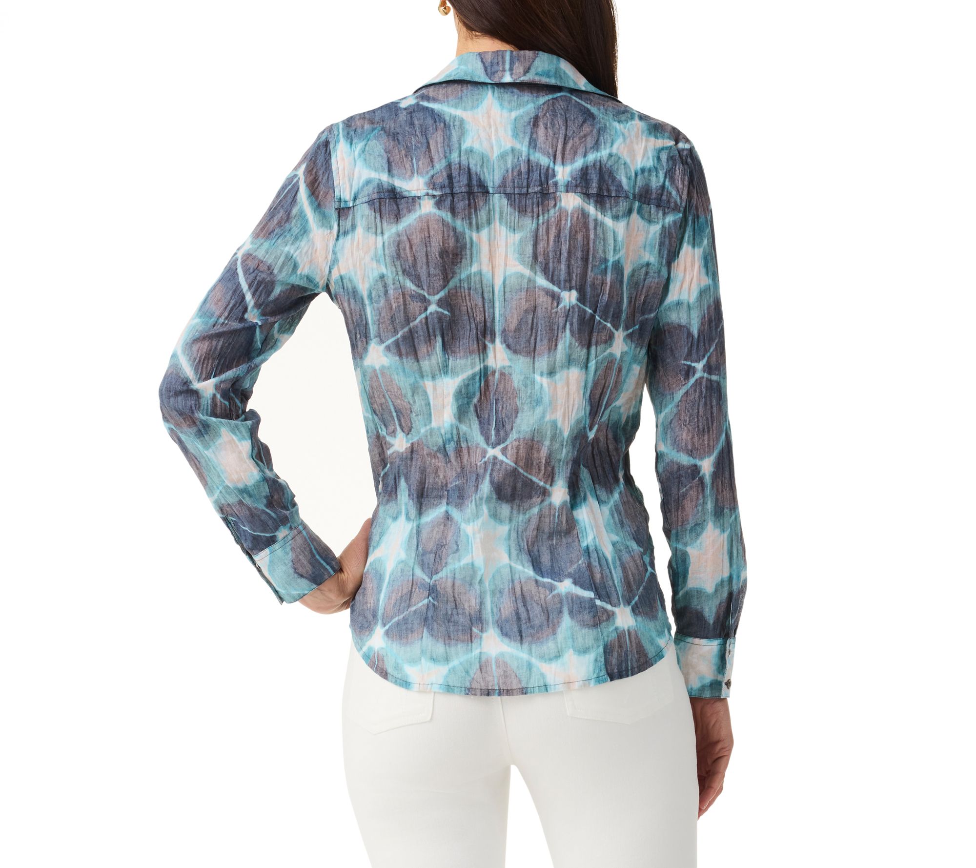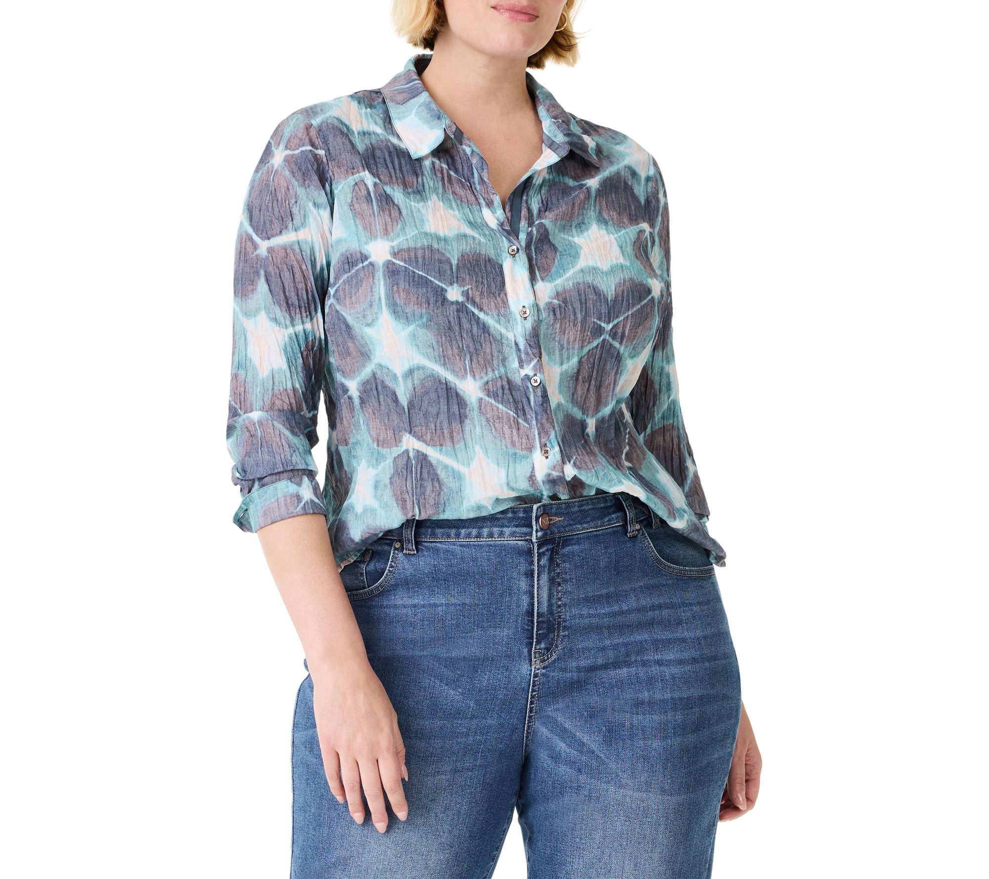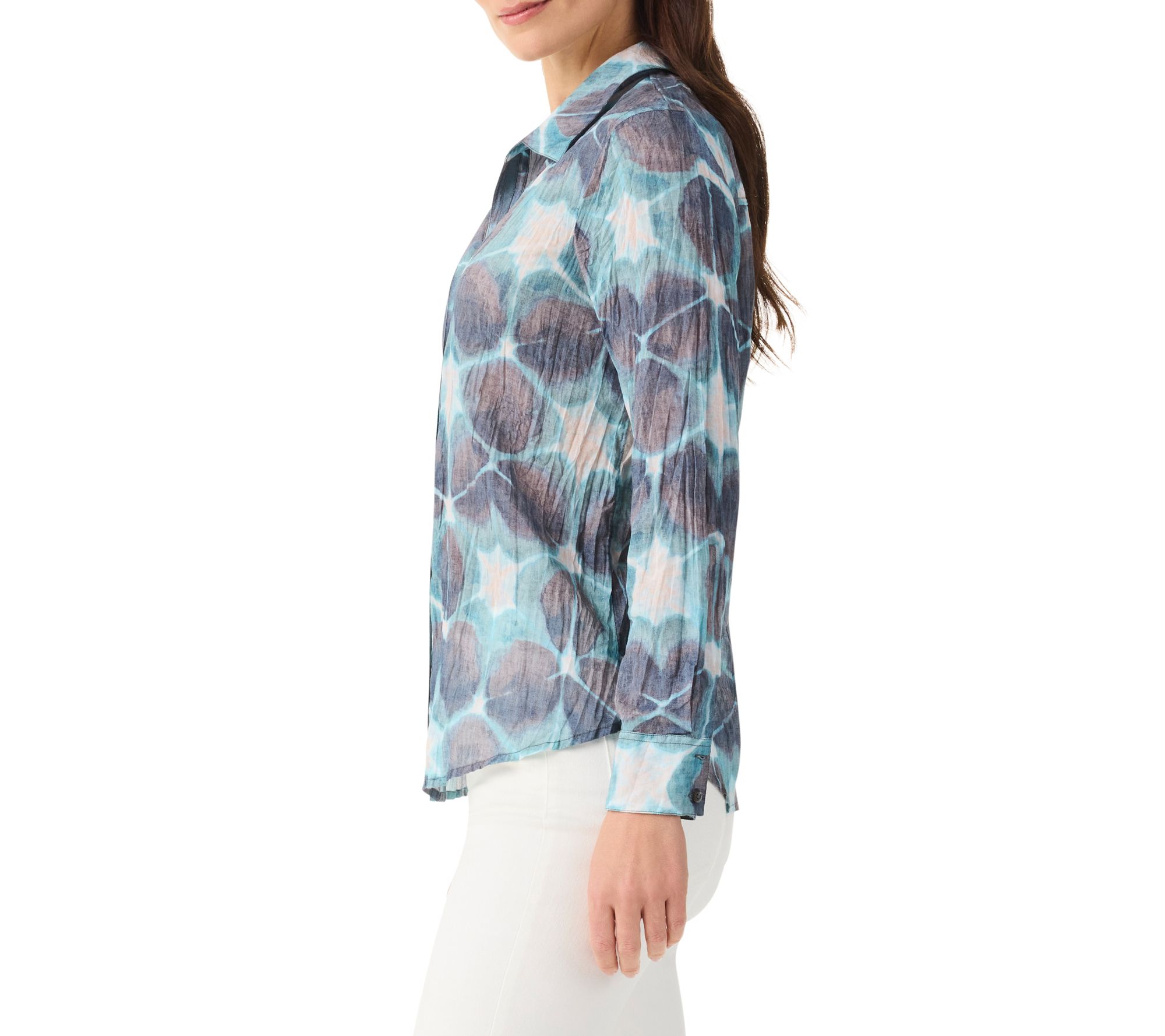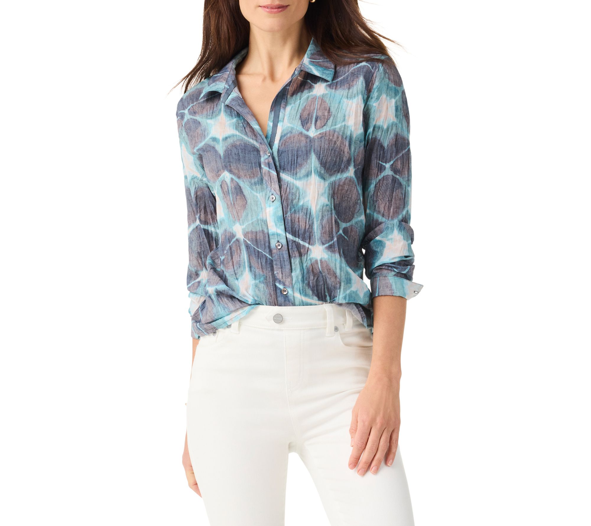 NIC+ZOE Ethereal Seas Button Front Crinkle Cotton Shirt