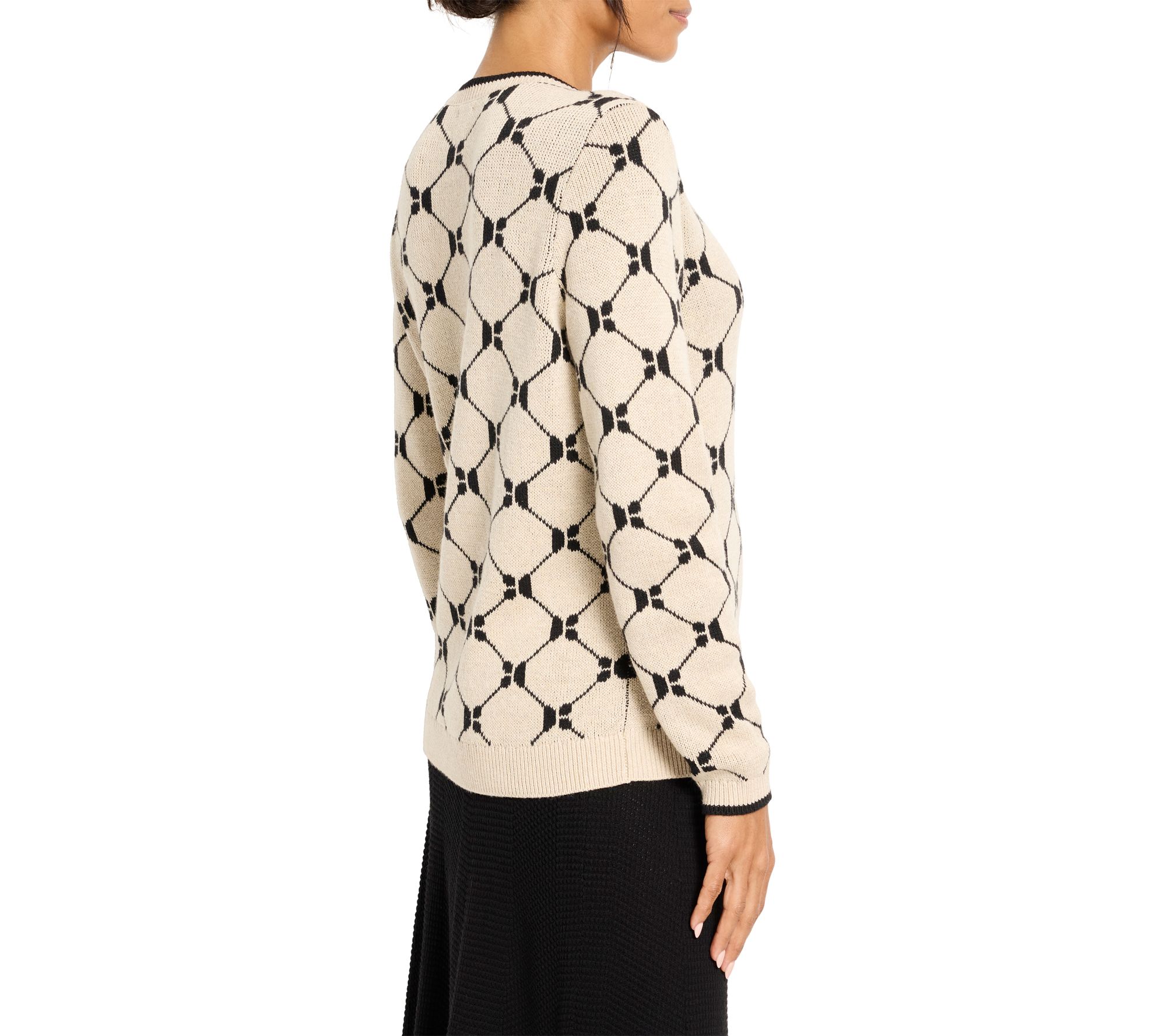 Whether you're headed to brunch or the office, this sophisticated sweater brings a chic, modern edge to your look with its geometric argyle pattern and soft, breathable knit. The midweight jacquard stitch adds just the right amount of texture, making it easy to dress up with tailored pants or keep casual with your favorite jeans. From NIC+ZOE.
